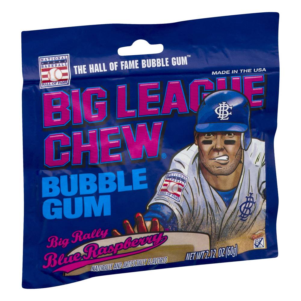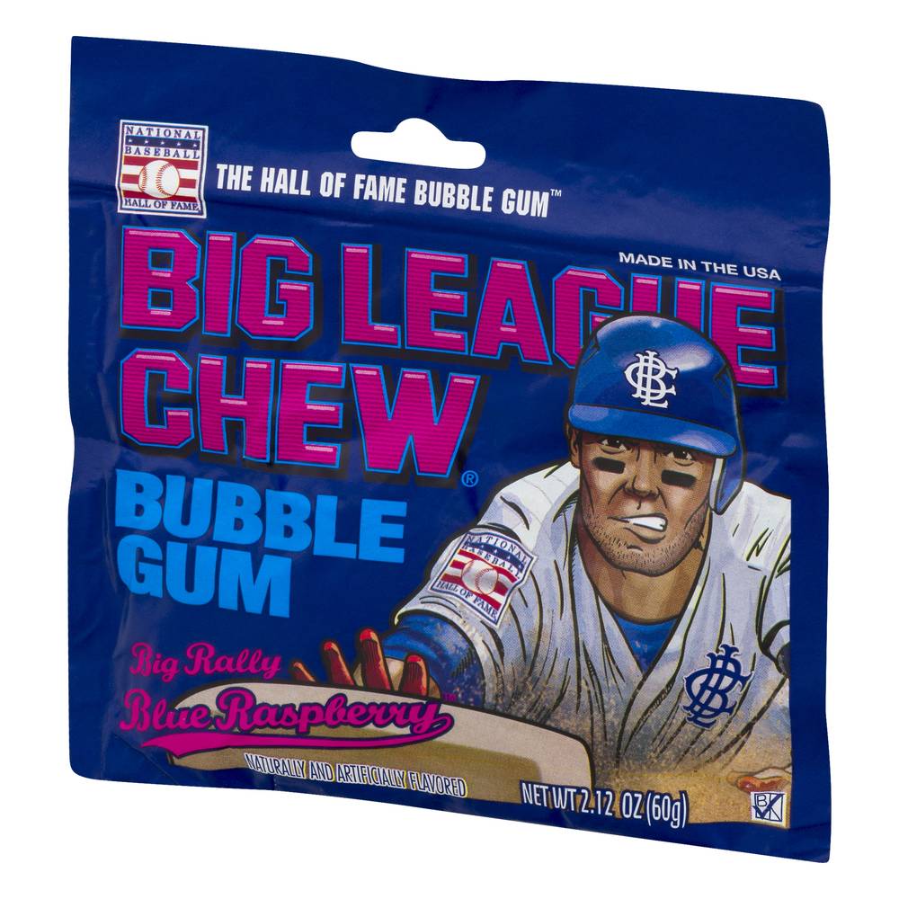 Big League Chew Big Rally Blue Raspberry Bubble Gum is shredded bubble gum with a juicy Big Rally Blue Raspberry flavor. It is packaged in a stay-fresh pouch designed to help retain its flavor. Manufactured in the USA, this product has been enjoyed by fans since 1980. Number of servings: 20