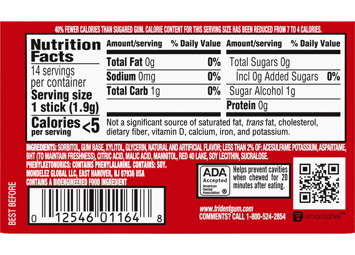 Trident Strawberry Twist Sugar Free Gum Number of servings: 14