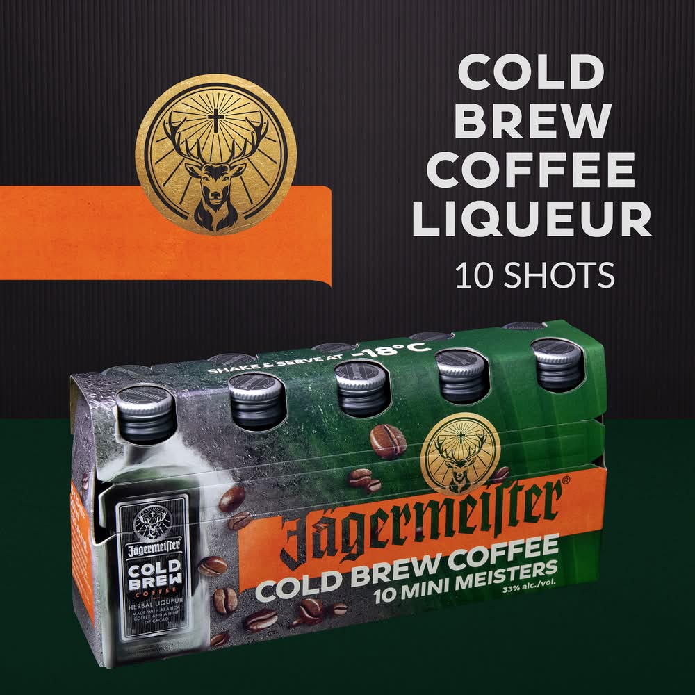 Jägermeister Cold Brew Coffee Liqueur Mini Meister • Pack size: 10 • Alcohol by volume: 33%