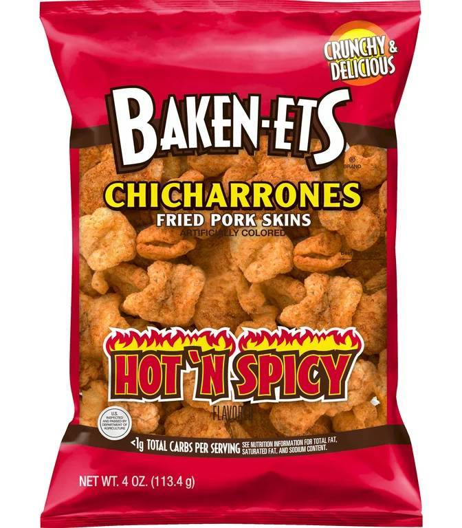 Baken-Ets Hot 'N Spicy Flavored Fried Pork Skins,( 4 oz)