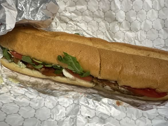 chicken cutlet, fresh mozzarella, tomato, arugula, pesto mayo, on a toasted grinder
