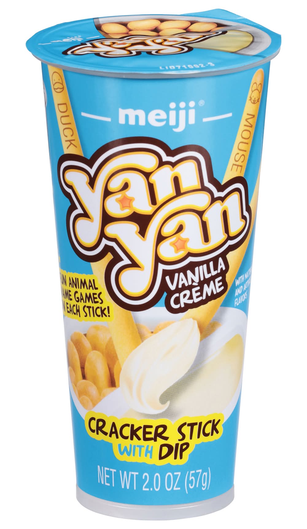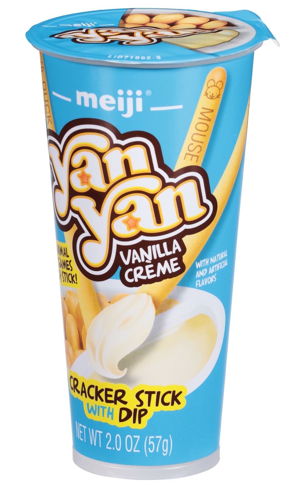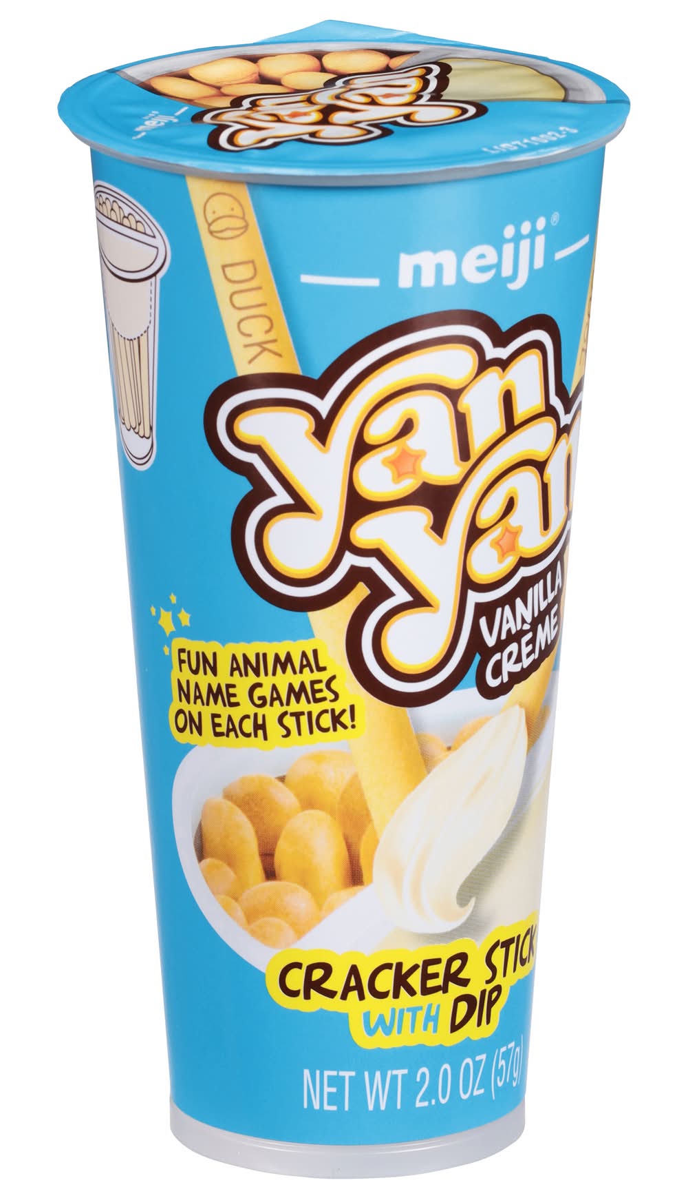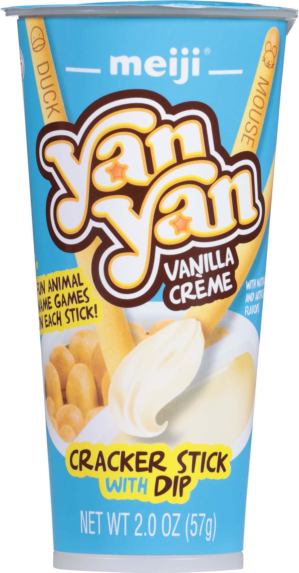 The snack that encourages playing with your food. Yan Yan is a combination of a crispy cookie stick and delicious smooth crème for dipping. Enjoy an interactive learning experience in every 2 oz. cup. Perfect for school lunches, as an afternoon snack or whenever you’re on the run. Let your imagination run wild - dip it in your morning coffee or hot chocolate, or create unique treats to share with your family. Flavor: Vanilla creme