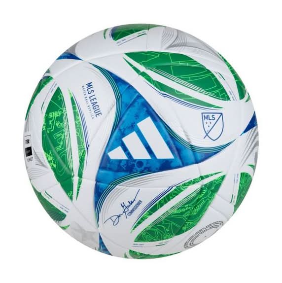 This adidas MLS League NFHS Soccer Ball - White/Green/Blue drives player performance. Its machine-stitched construction withstands powerful strikes without compromise. The butyl bladder retains optimal air pressure strike after strike and session after session.Vibrant white, green and blue panels enhance visibility under stadium lights. Durable design withstands rigorous training schedules and competitive matches. Precise flight and consistent bounce elevate every practice and gameplay experience. Seamless Surface: Delivers a smoother touch and significantly reduces water absorption during play.High Durability: Ensures lasting performance match after match.Outstanding Ball Control: Offers precise handling and stable flight dynamics.Requires Inflation: Inflates quickly to optimal pressure, maintaining consistent bounce.Recycled TPU Cover: Made with 100% recycled TPU, supporting sustainable play. • Color: White/green • Size: 5 • unisex