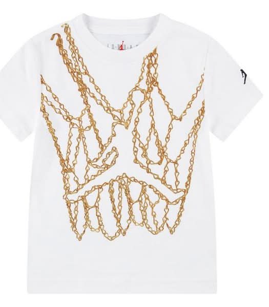 Jordan Big Boys' Chain Tee Shirt - White, White/Gold, Size: Large, Cotton