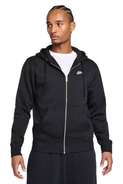 The Nike Men’s Club Full-Zip Fleece Jacket features a smooth exterior and a brushed fleece interior that feels soft against skin. The full-zip front lets you adjust coverage as temperatures change.This sweatshirt serves comfort you can count on, thanks to its brushed fleece lining. The smooth exterior maintains a clean profile, creating a timeless look. It zips up quickly to match your pace. Embroidered Nike Futura Logo: Highlights the iconic Nike design in bold detail. Divided Pouch Pocket: Keeps small essentials organized and secure. Ribbed Hem and Cuffs: Provide a snug fit while maintaining shape. Metal Zipper: Offers smooth, durable closure with a reliable pull. Body Material: 80% cotton / 20% polyester blend delivers comfort and durability. Hood Lining: 80% cotton / 20% polyester ensures breathable layering comfort. Machine Wash: Easy-care design allows simple at-home cleaning. Imported • Color: Black • Size: XLT • male