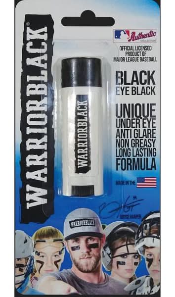 Maintain clear vision on the field with Warrior Black Single Stick Eyeblack. This anti-glare product glides on easily and lasts through the entire game. It reduces sunlight glare and feels non-greasy with aloe and menthol delivering a cooling effect. The Warrior Black Single Stick Eyeblack blend features Vitamin E, aloe, caffeine, beeswax, antioxidants, and menthol. MLB player Bryce Harper uses this exclusive under-eye stick. Made in the USA. Glare Reduction: Warriorblack eyeblack minimizes sunlight glare. Long-Lasting Formula: Non-greasy formula glides on easily and stays in place throughout the game. Cooling Effect: Aloe and menthol deliver a soothing cooling sensation upon application. Skin-Healthy Blend: Enriched with Vitamin E, caffeine, beeswax, and antioxidants. Pro-Player Endorsement: Exclusive anti-glare stick worn by MLB player Bryce Harper Made in the USA: Net wt .15oz • Color: Black • Size: NOSIZE • unisex