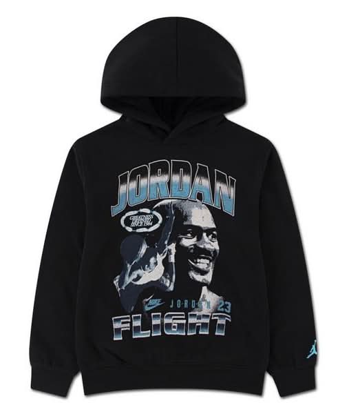Look fly in the Jordan Big Boys' GOAT Hoodie - Gamma Blue, made of soft cotton/poly fleece containing lurex fibers that create an allover subtle shimmer. The roomy cut and dropped shoulders create a relaxed fit with a cozy feel and the metallic wordmark logo perfectly complements their Jordans. 66% Cotton, 24% Polyester, 7% Nylon, 3% Lurex Machine Wash Imported • Color: Black • Size: M • male