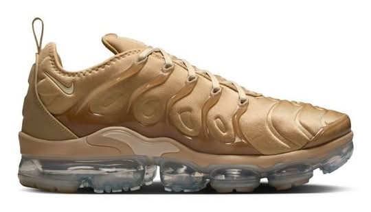 The Nike Air VaporMax Plus "Parachute Beige/Desert Khaki/Black/White" Men's Shoe nods to the 1998 Air Max Plus with its floating cage, padded upper and bold heel logo.It integrates VaporMax Air technology to enhance cushioning, deliver a lightweight feel and create a sleek, futuristic design that pushes footwear into the future. Each element connects heritage style with modern innovation at every step. Floating Plastic Cage On Upper: Mimics beach-inspired design of original Air Max Plus and anchors these shoes in Nike heritage. VaporMax Air Technology: Offers ultralightweight cushioning. Synthetic Upper: Delivers lightweight comfort and lasting durability. Rubber Pods In High-Wear Areas Of Outsole: Improve traction and extend the life of the tread. Pull Tab On Heel: Enables quick entry and removal. Foam Midsole: Provides responsive support. Reflective Details: Improve visibility in dim lighting. Not Intended To Function As Personal Protective Equipment (PPE): Does not serve as safety gear. • Color: Tan • Size: 9.5 • male