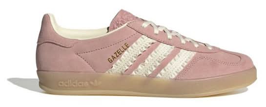 Introduced as an indoor training alternative to the OG Gazelle, the adidas Originals Gazelle Indoor "Wonder Mauve/Cream White/Gum" Women's Shoe blends athletic roots with street-ready appeal. Its soft suede upper delivers a classic look and feel while preserving the silhouette's original profile.A signature T-toe overlay and gum rubber outsole honor the original design. Ruffled 3-Stripes complete the aesthetic with a luxurious accent. Fit: Regular fit offers reliable comfort and a natural shape that accommodates the foot comfortably during extended indoor wear.Closure: Lace closure allows precise adjustment to secure the foot and maintain stability during play.Upper Material: Premium leather overlays combine with soft textile to provide structure, durability, and classic adidas Originals style.Lining: Lightweight synthetic lining enhances breathability and moisture management to keep feet cool during active use. • Color: Pink/white • Size: 8.5 • female