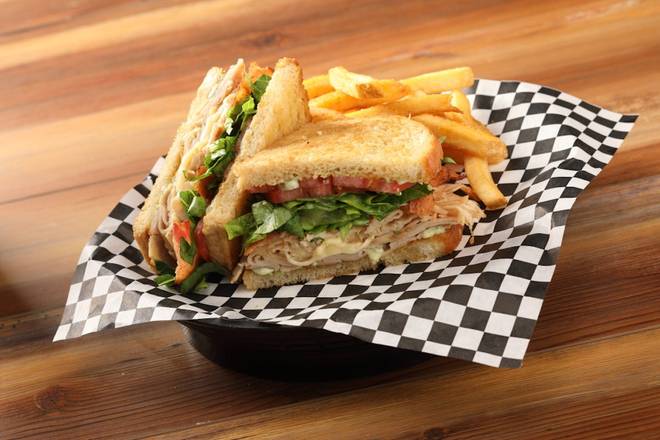 thinly sliced turkey, roasted onions & swiss cheese, on sourdough bread, served with one standard side