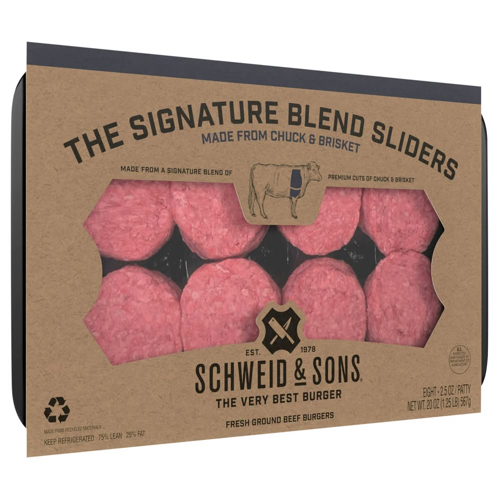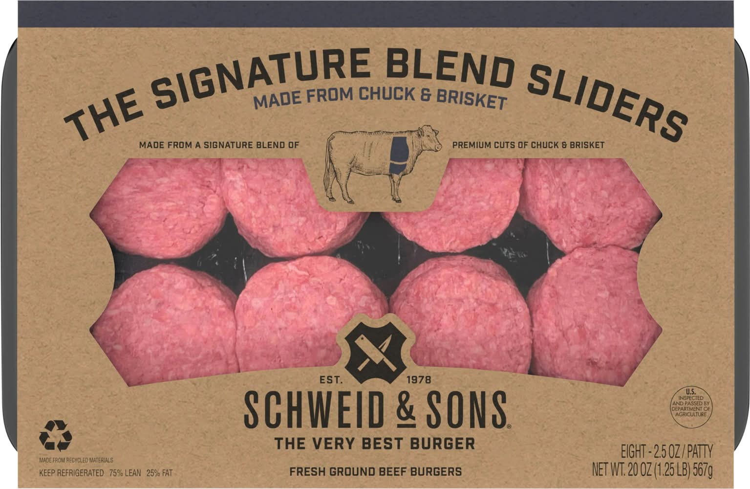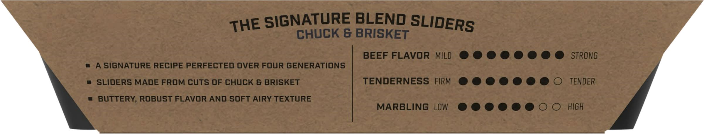 Beef Burgers, Fresh Ground, 75%/25%, The Signature Blend Sliders Packaging: Reusable