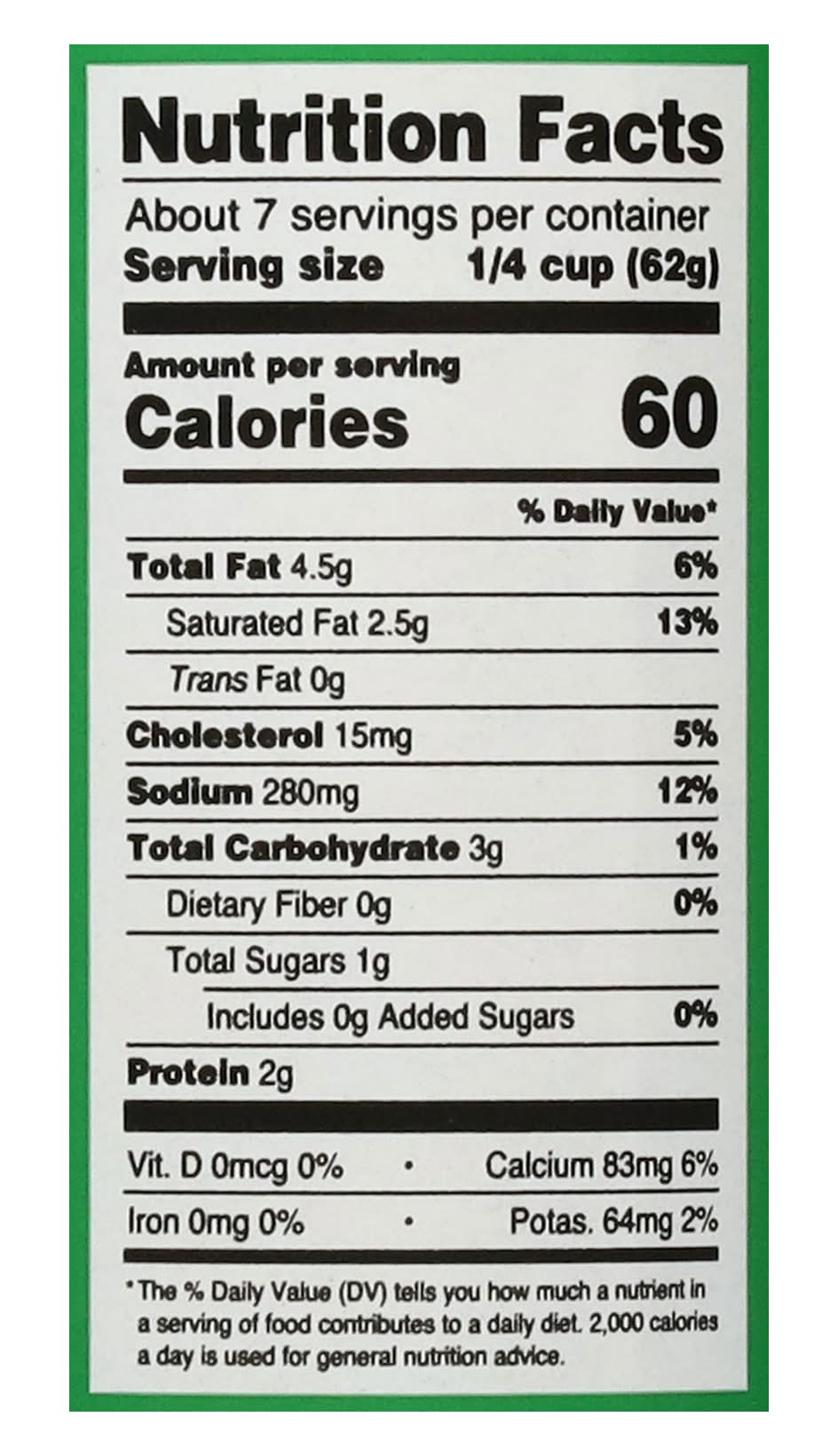 Ingredients: Organic Vegetable Stock (Water, Organic Vegetable Broth Concentrate [Organic Carrot, Organic Celery, Organic Onion], Sea Salt, Organic Onion Powder), Cream, Buttermilk (Vitamins A & D Added), Spinach, Parmesan and Romano Cheeses (Pasteurized Milk, Cheese Culture, Salt, Enzymes), Ricotta Cheese (Pasteurized Whole Milk, Whey, Vinegar, Salt), Rice Starch, Lemon Juice Concentrate, Garlic, Sea Salt, Onion Powder, Extra Virgin Olive Oil, Xanthan Gum, White Pepper, Black Pepper Contains: Milk, Celery
