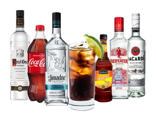 This Kit Includes: Ketel One Vodka (750 ml) El Jimador Blanco (750 ml) Bacardi Superior (750 ml) Hiram Walker Triple Sec 30 (750 ml) Beefeater London Dry Gin (750 ml) Coca-Cola Bottle (1 L)