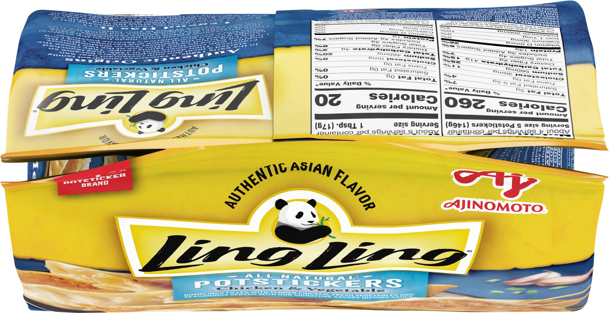 Dumpling filled with tender chicken, fresh vegetables and seasonings served with our signature savory dipping sauce. 13 g protein per serving without sauce. America's no. 1 potsticker brand. Authentic asian flavor. All natural (no artificial ingredients; minimally processed). Ready in 10 min. Includes savory dipping sauce. Eat well, live well. Great as a snack or part of a complete meal. Authentic origins: in the early 1980s, a taiwanese immigrant family started a local dim sum restaurant near san francisco. Their delicious potstickers became so popular with customers that in 1986, they launched ling ling based on their family recipe. They chose the ling ling brand name after one of the two famous pandas gifted to the national zoo in washington dc. Building on our proud name and heritage, ling ling has since become america's favorite potstickers. These wholesome potstickers, made from the original family recipe, are filled with juicy chicken, freshly sourced vegetables and savory seasonings. Serve with our signature dipping sauce and bring the true flavors of asia to your table! Legend has it - a chef in china's imperial court accidentally left a batch of dumplings on the stove too long. With no time to spare, he served them golden-browns side up and proudly proclaimed them as his special creation. His legendary potstickers have since become a favorite for food lovers everywhere. Potstickers: inspected for wholesomeness by u.S. Department of agriculture. Sauce: inspected for wholesomeness by u.S. Department of agriculture. Scan for more ideas. cover our other authentic asian dishes: ramen; fried rice. • Brand: Ling ling • Number of servings: 4 • Ajinomoto Foods North America, Inc., Ontario, CA, 91764, Ph: 866-536-8008