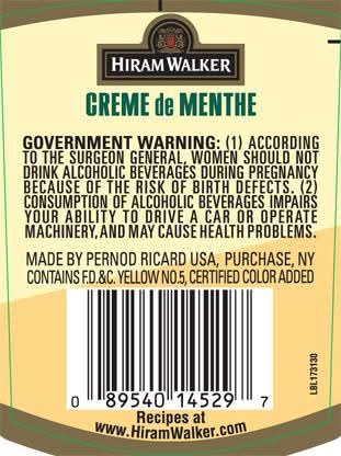Hiram Walker Crème de Menthe is smooth and pure sweet mint with a pop of green color Alcohol by volume: 15%