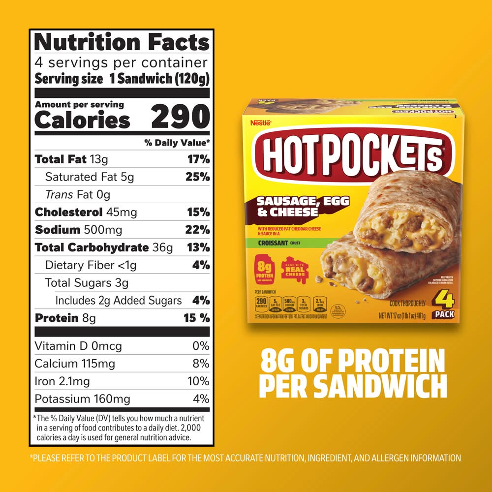 Hot Pockets Egg and Cheese Sausage Sandwich (17 oz, 4 ct)