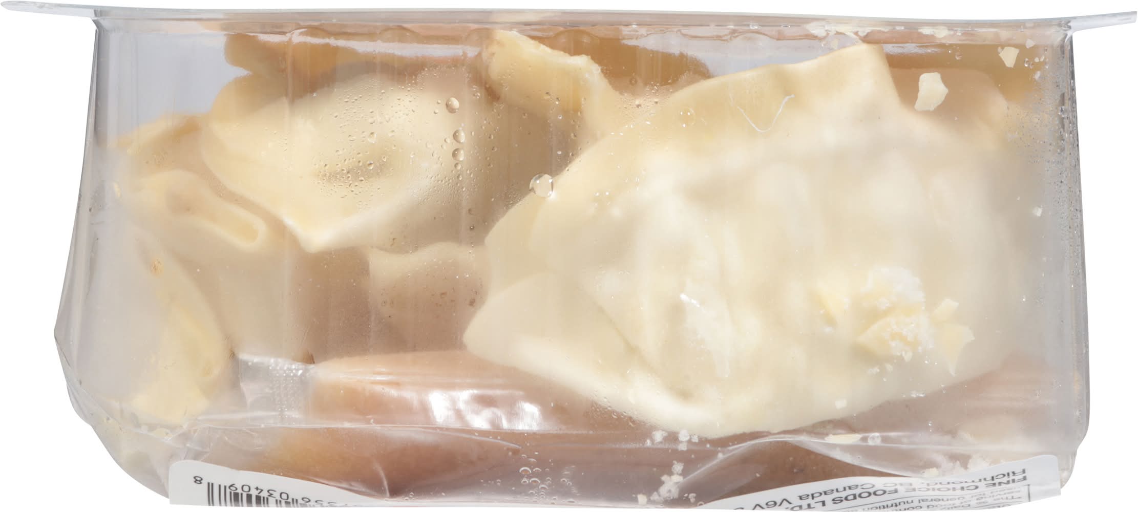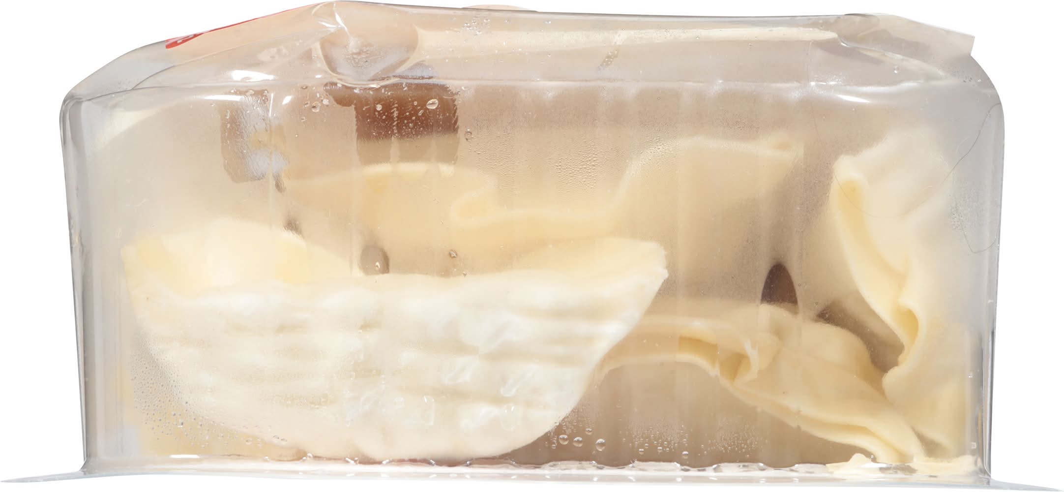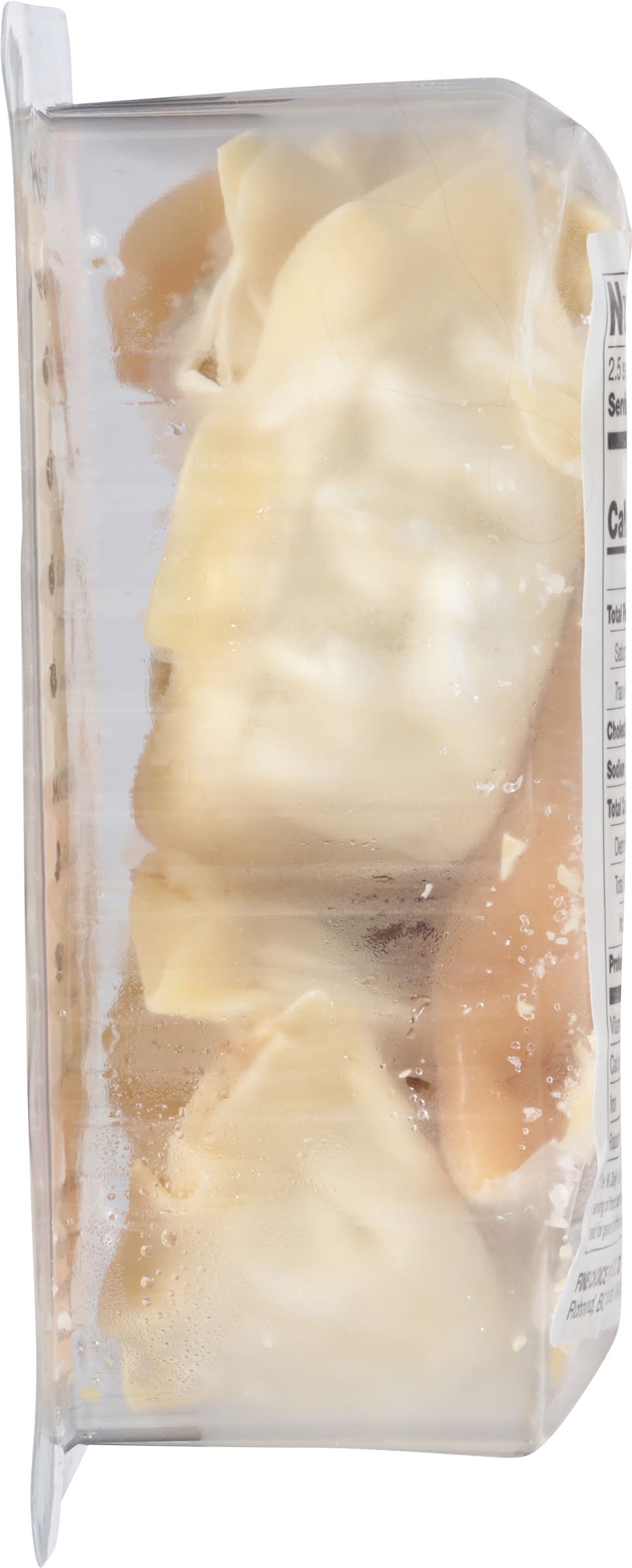 Ingredients: Filling: Chicken, Cabbage, Sesame Oil, Carrot, Ginger, Salt, Green Onion, Soy Sauce (Water, Soybeans, Wheat, Salt), Canola Oil, Ground Sesame, Sugar, Spices, Cilantro, Granulated Garlic. Wrapper: Bleached Enriched Flour [Wheat Flour, Enrichment (Niacin, Iron, Thiamine Mononitrate, Riboflavin, Folic Acid), Benzoyl Peroxide, Ascorbic Acid (Dough Conditioner), Amylase], Water, Canola Oil, Salt, Corn Starch. Gyoza Sauce: Water, Sugar, Soy Sauce (Water, Soybeans, Wheat, Salt), Vinegar, Canola Oil, Salt, Sesame Oil, Granulated Garlic, Spices (Contain Turmeric), Guar Gum, Xanthan Gum Contains: Soybeans, Sesame, Wheat, Corn