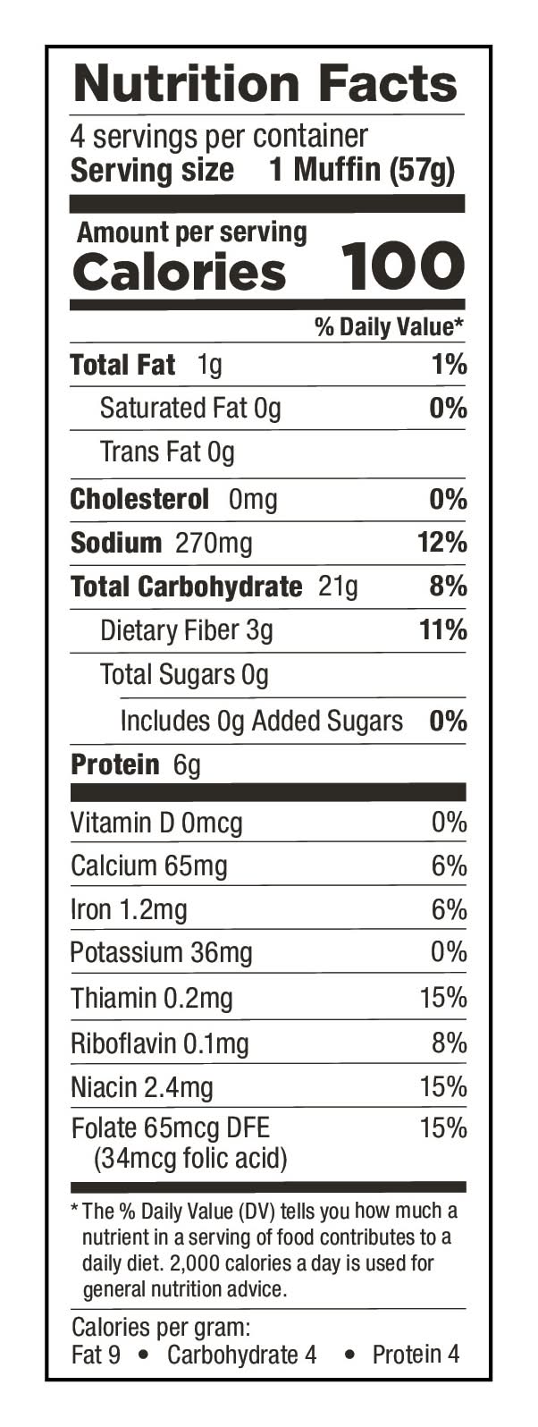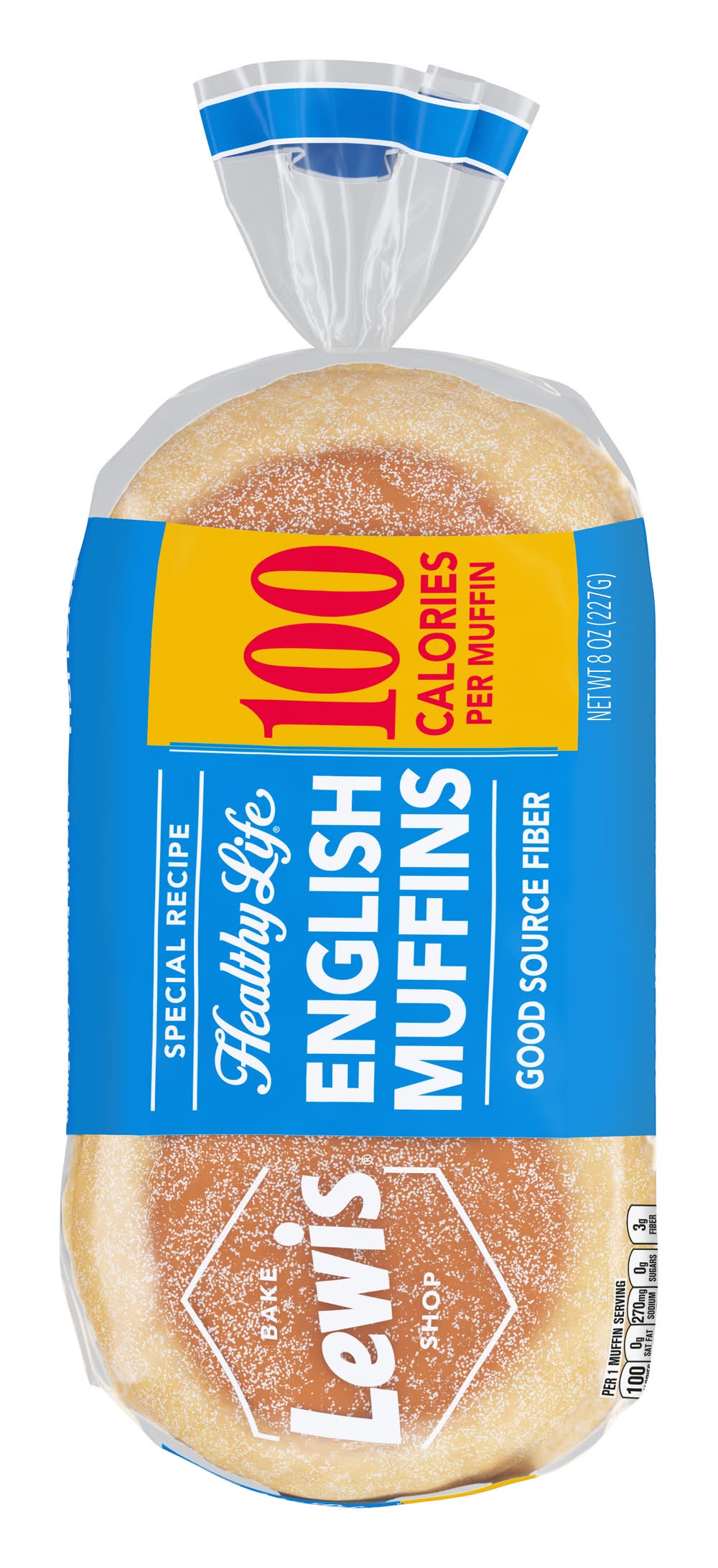 Healthy Life English Muffins are a source of dietary fiber, offering 3 grams per 57g muffin. Each muffin contains 100 calories and has no saturated fat. These muffins exclude artificial colors, flavors, and high fructose corn syrup. They are made with a special recipe and include a bioengineered food ingredient. With 270 mg of sodium, these English muffins provide a balance of taste and nutrition. Number of servings: 4