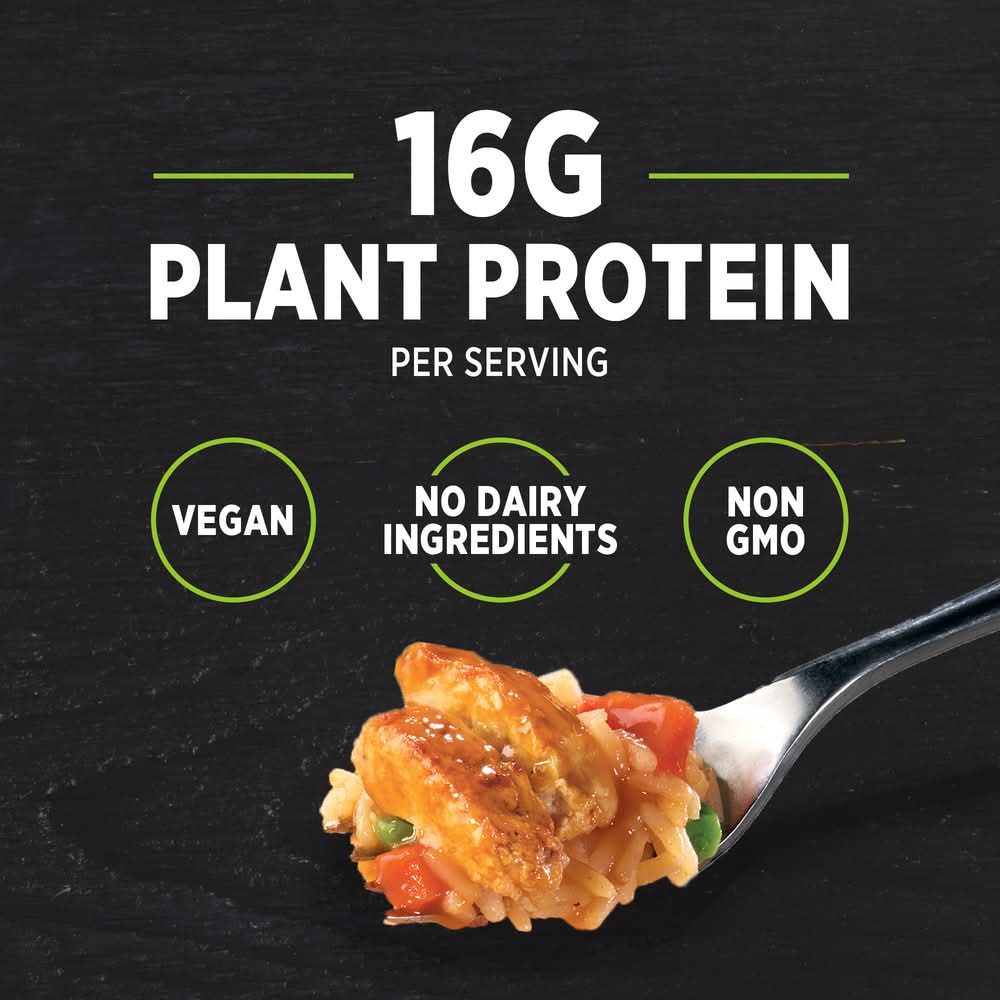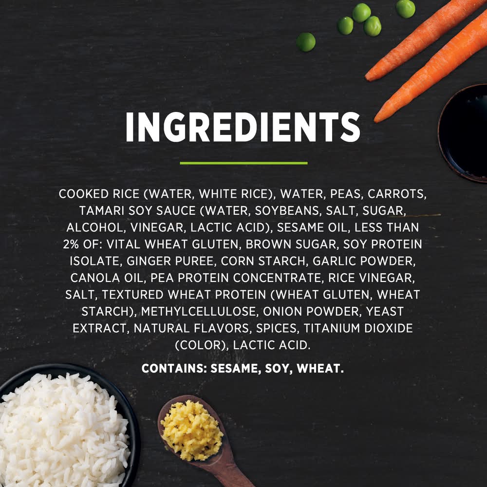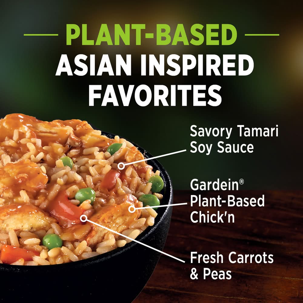 Go meatless without missing out on flavor with Gardein Ultimate Plant-Based Chick'n Fried Rice. This vegan meal features Gardein plant-based chick’n that's known for having texture and taste like the real thing. Add in a medley of rice, peas and carrots topped generously by a savory sauce and you’re ready for an Asian infusion in a microwave meal that you can prepare at home. This plant-based meal packs in 16 grams of protein and is easy to prepare in under 5 minutes. It also contains no dairy ingredients and is Non-GMO Project Verified, so you can put your mind at ease while making this delicious prepared meal. Skip the meat for a meal, or for good, without skipping your favorite foods. Gardein: Your Favorite Foods Made Meatless.