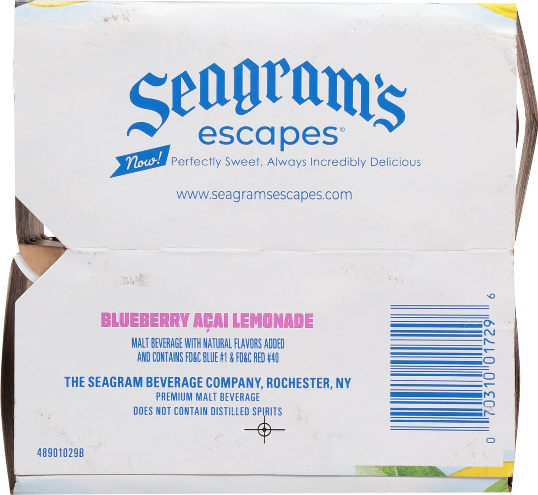 Seagram's Escapes Premium Malt Beverage Beer, Blueberry Acai Lemonade (4 x 11.2 oz)