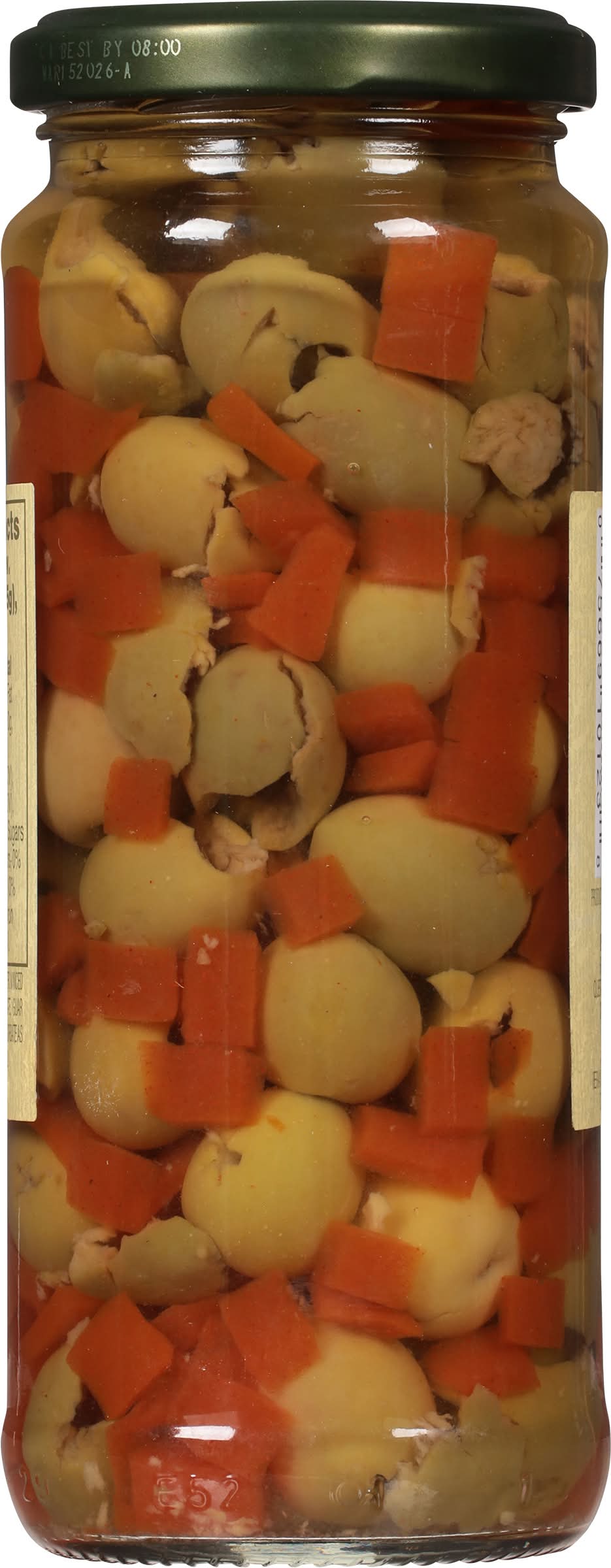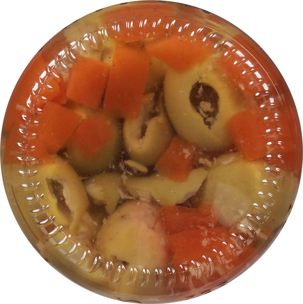 Ingredients: Manzanilla Olives, Water, Minced Pimiento (Pimiento, Sodium Alginate, Guar Gum, Calcium Chloride, Potassium Sorbate as a Preservative), Salt and Lactic Acid