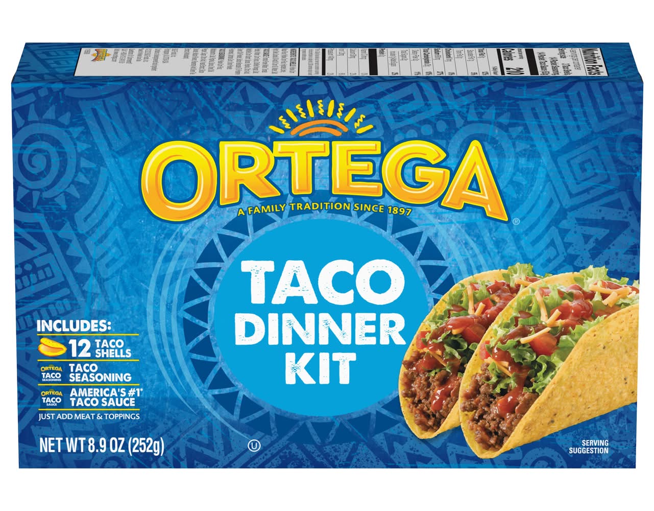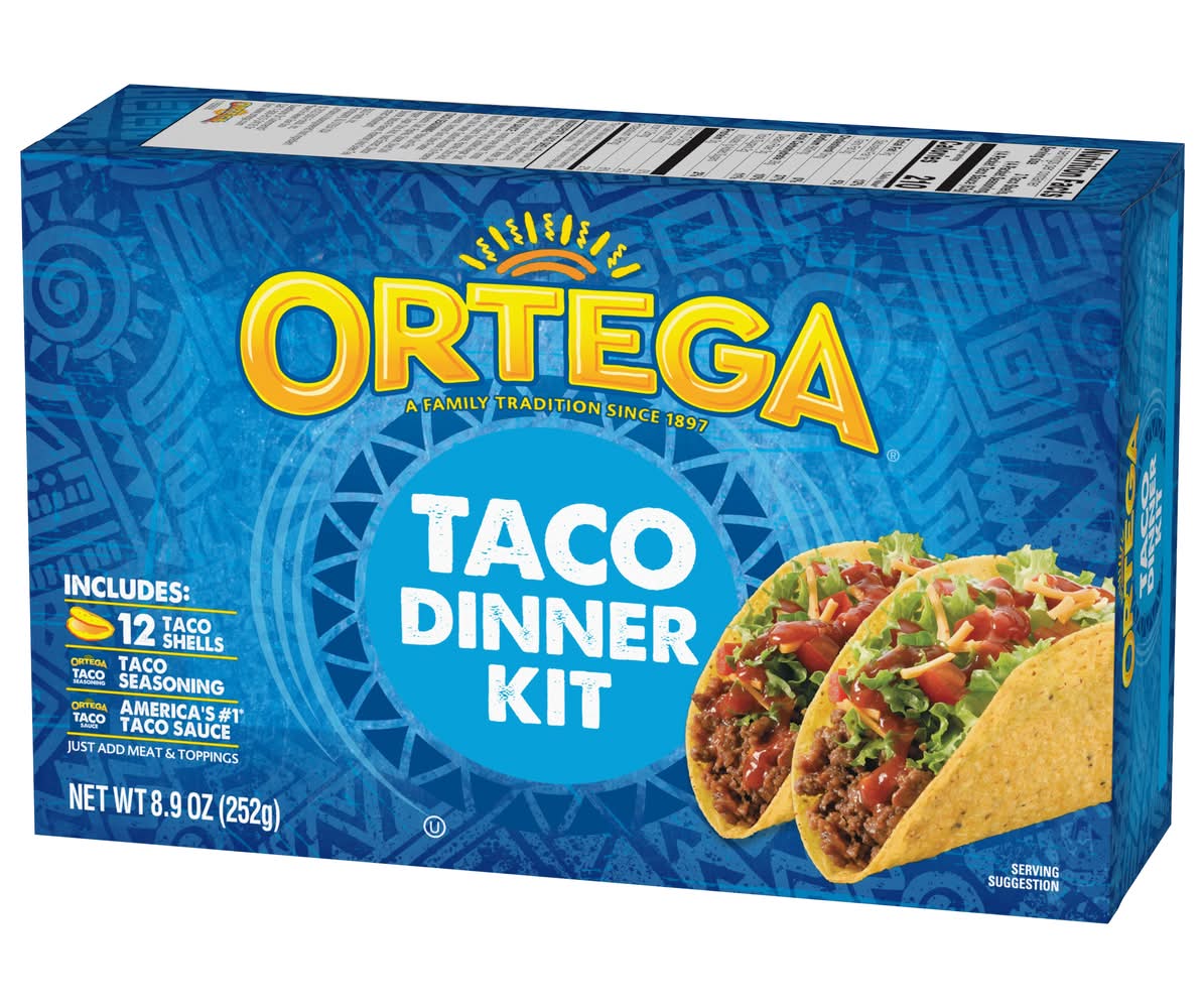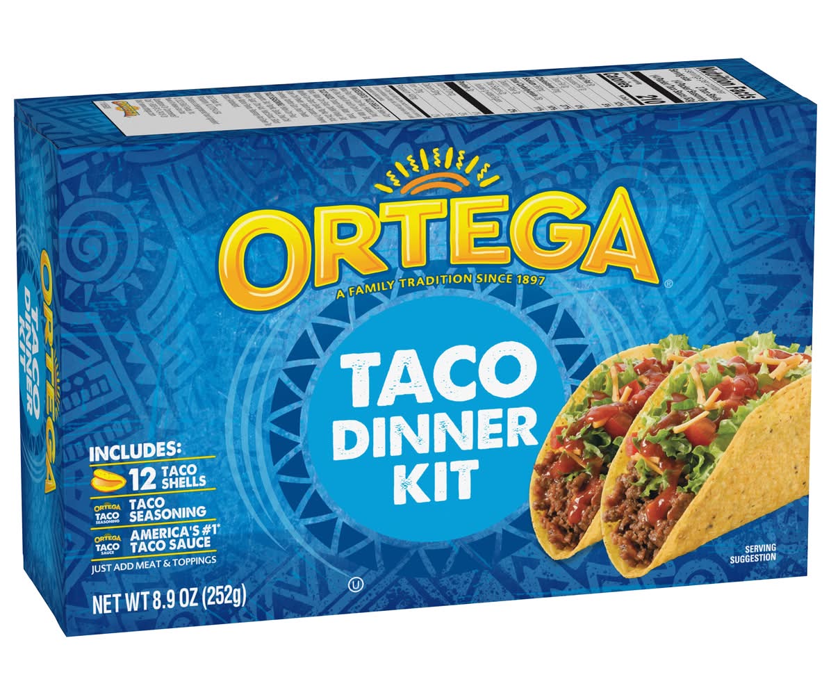 Ingredients: Taco Shells: Yellow Corn Masa Flour (Yellow Corn Flour, Hydrated Lime), High Oleic Canola Oil and/or Corn Oil, Water, Salt. Taco Sauce: Tomato Puree (Water, Tomato Paste), Water, Corn Syrup, Distilled Vinegar, Salt, Modified Corn Starch, Spices, Paprika, Citric Acid, Green Chili Powder, Sodium Benzoate (to Preserve Freshness), Xanthan Gum, Onion Powder. Taco Seasoning: Yellow Corn Flour, Salt, Maltodextrin, Paprika, Spices, Dried Chili Pepper, Sugar, Citric Acid, Yeast Extract, Silicon Dioxide, Natural Flavors, Rosemary and Green Tea Extract (Antioxidant) Contains: Corn