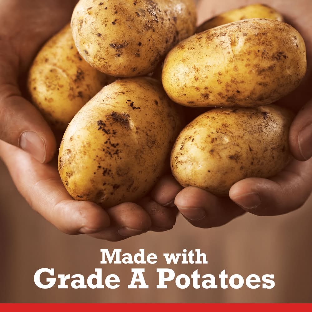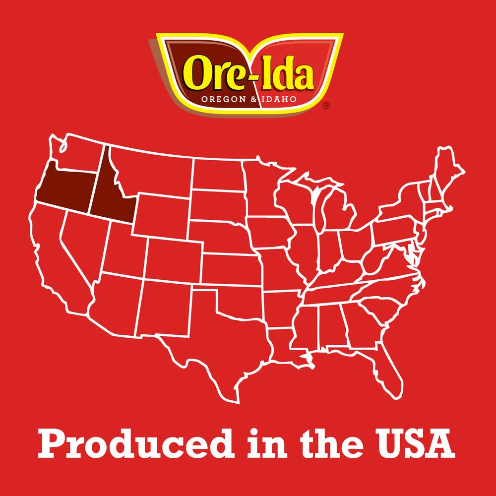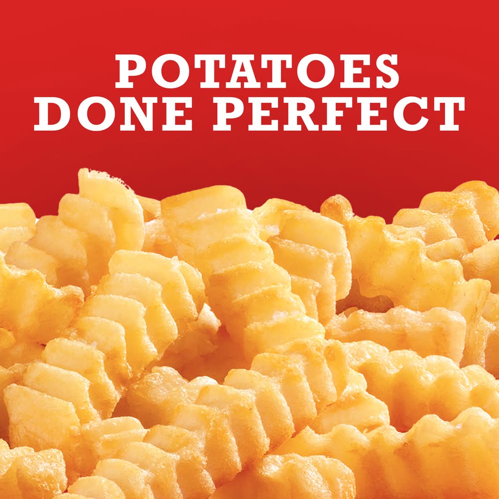 Ore-Ida Golden Crinkles French Fried Potatoes make it easy to enjoy delicious fries at home. Crispy and golden, our fries are made from freshly peeled potatoes. Our gluten-free fries offer a crispy crinkle cut outside and a fluffy inside for a tasty blend of textures to make your next family meal a success. Toss our frozen fries on a baking sheet and bake in the oven according to package instructions for perfect, golden fries. An American classic, our crinkle fries are also ideal for dipping. Serve up the traditional burger and fries, or get creative with loaded fries topped with cheese and bacon. Each 16 oz bag of crinkle cut fries is sealed to lock in flavor and contains about 5 servings, perfect for one family dinner. Flavor: Cheesy