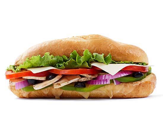 Lettuce, mushrooms, tomatoes, onions, green peppers, black olives, & vinaigrette dressing served on hot garlic cheese bread.