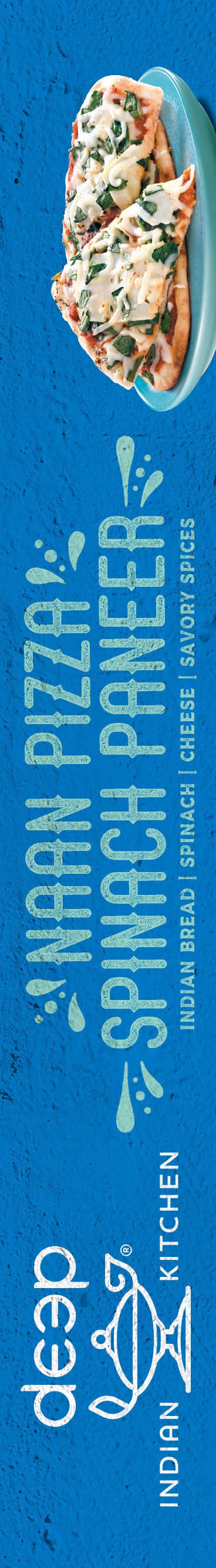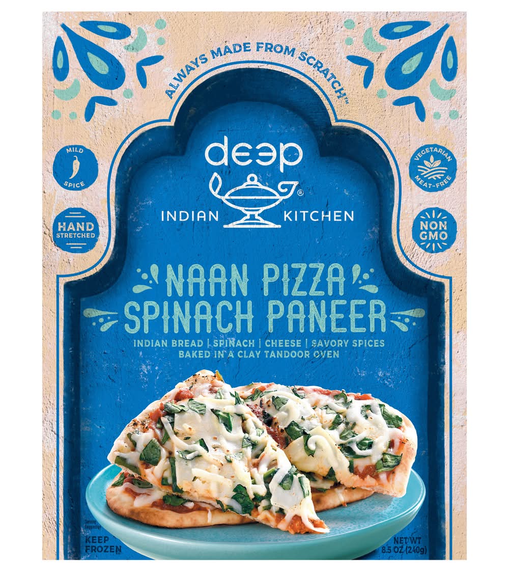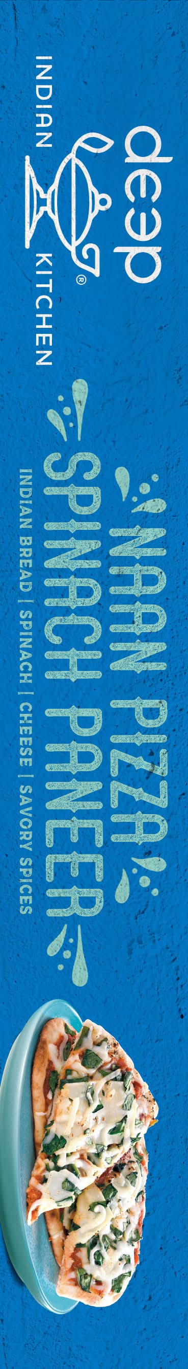 Naan Pizza, Spinach Paneer, Medium Spice • Brand: Deep • Size: 0.49 • GMO-free, vegetarian • Number of servings: 2 • Packaging: Reusable