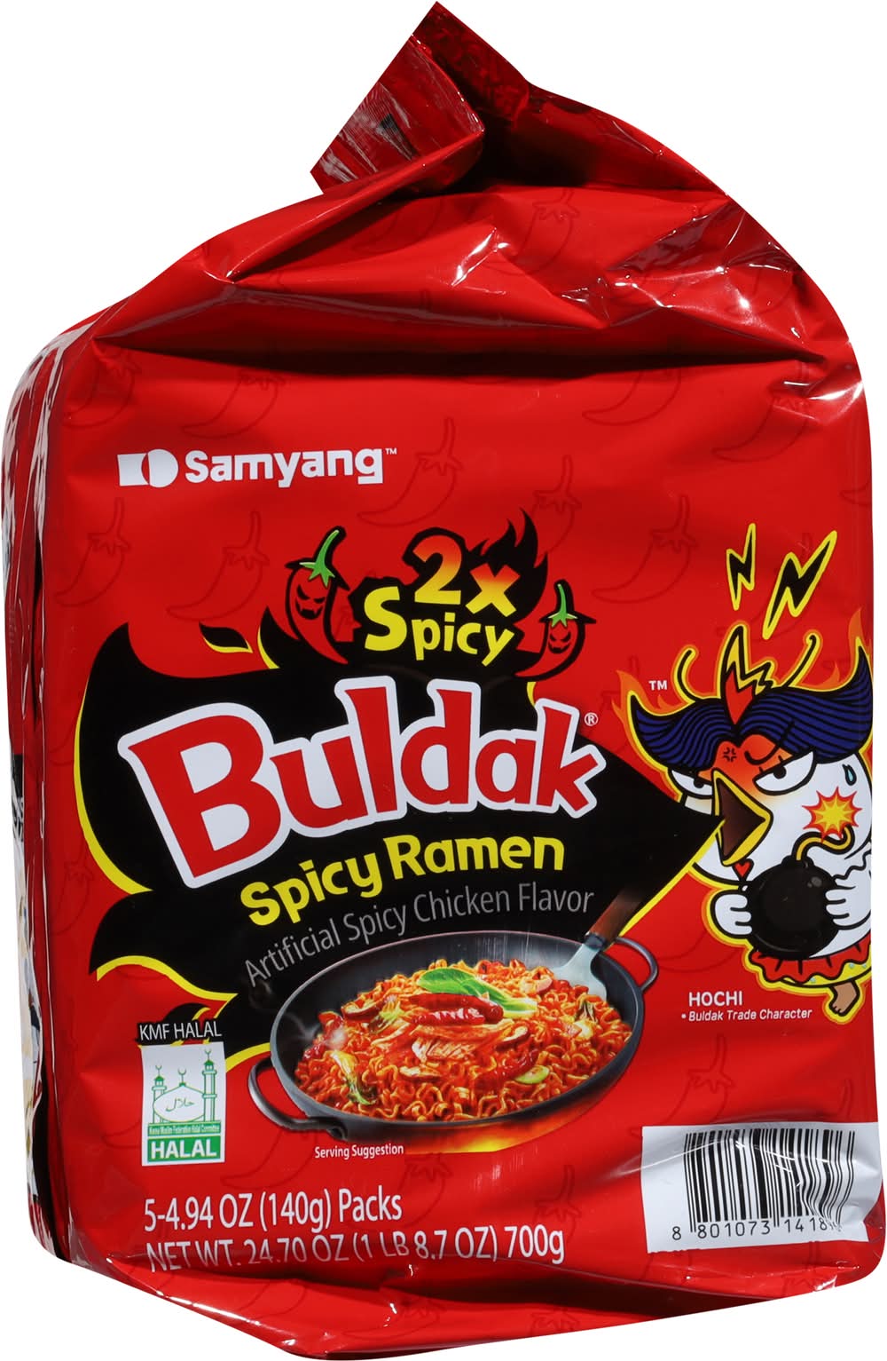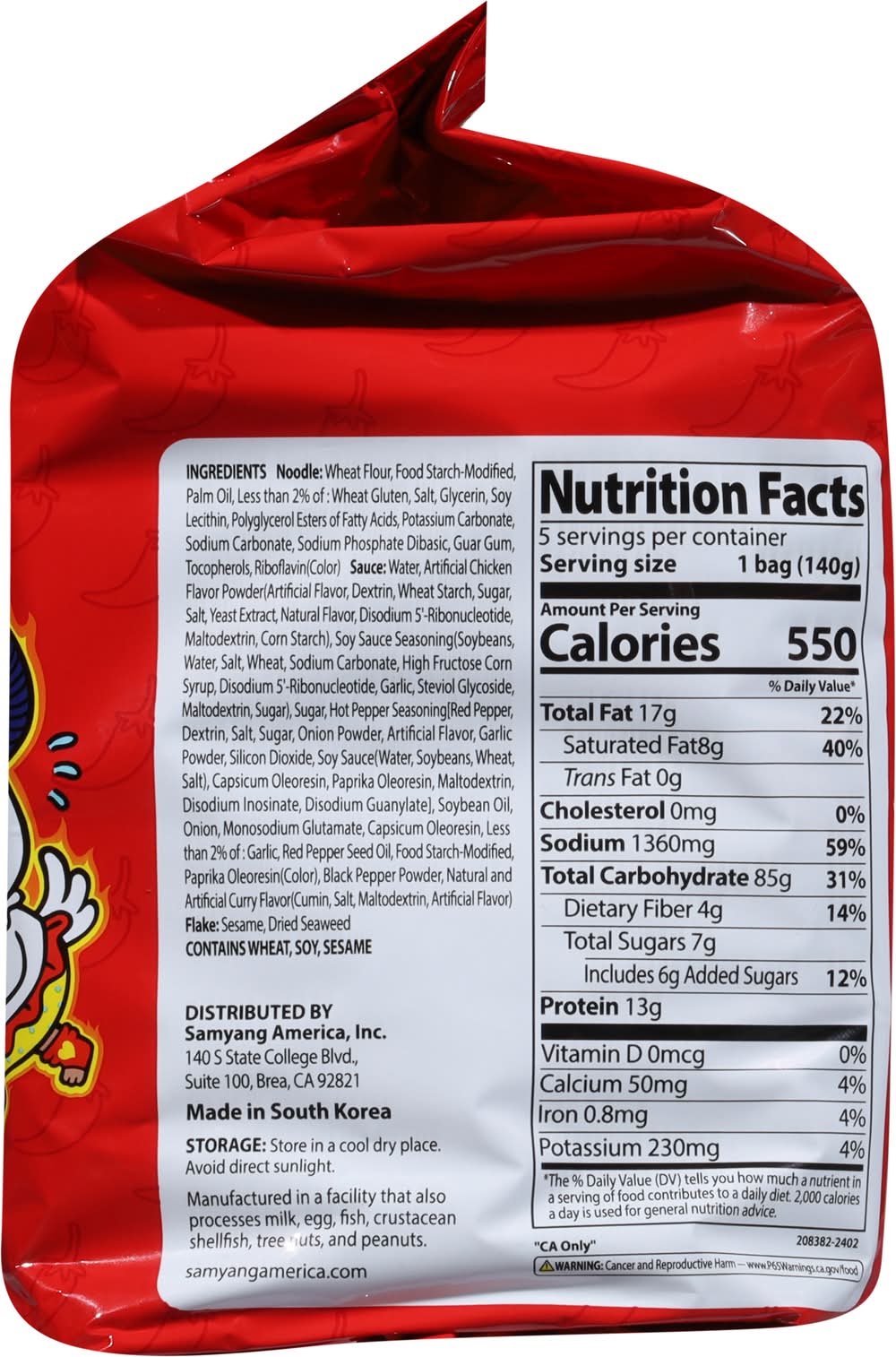 • Brand: Samyang • Flavor: Chicken • Pack size: 5 • Size: 5 • halal • Number of servings: 5 • Packaging: Reusable