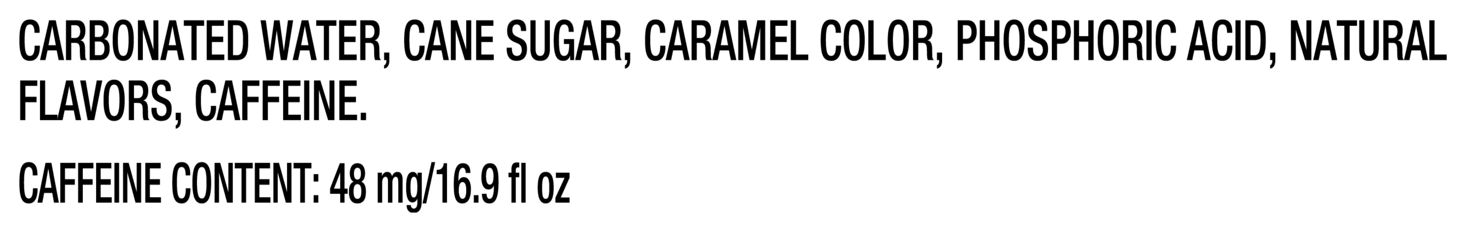 Ingredients: Carbonated Water, High Fructose Corn Syrup, Caramel Color, Phosphoric Acid, Natural Flavors, Caffeine.