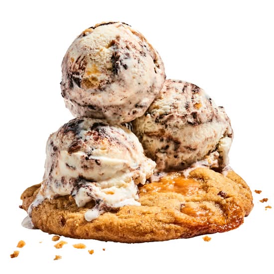 2 scoops of ice cream on a warm Deluxe cookie (double the size of our Classic cookie)