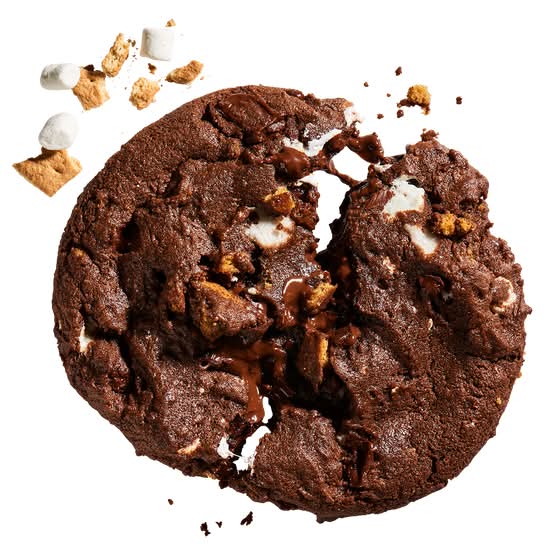 A warm, decadent chocolate cookie packed with toasty marshmallow, crunchy graham cracker, and chocolate chunks.