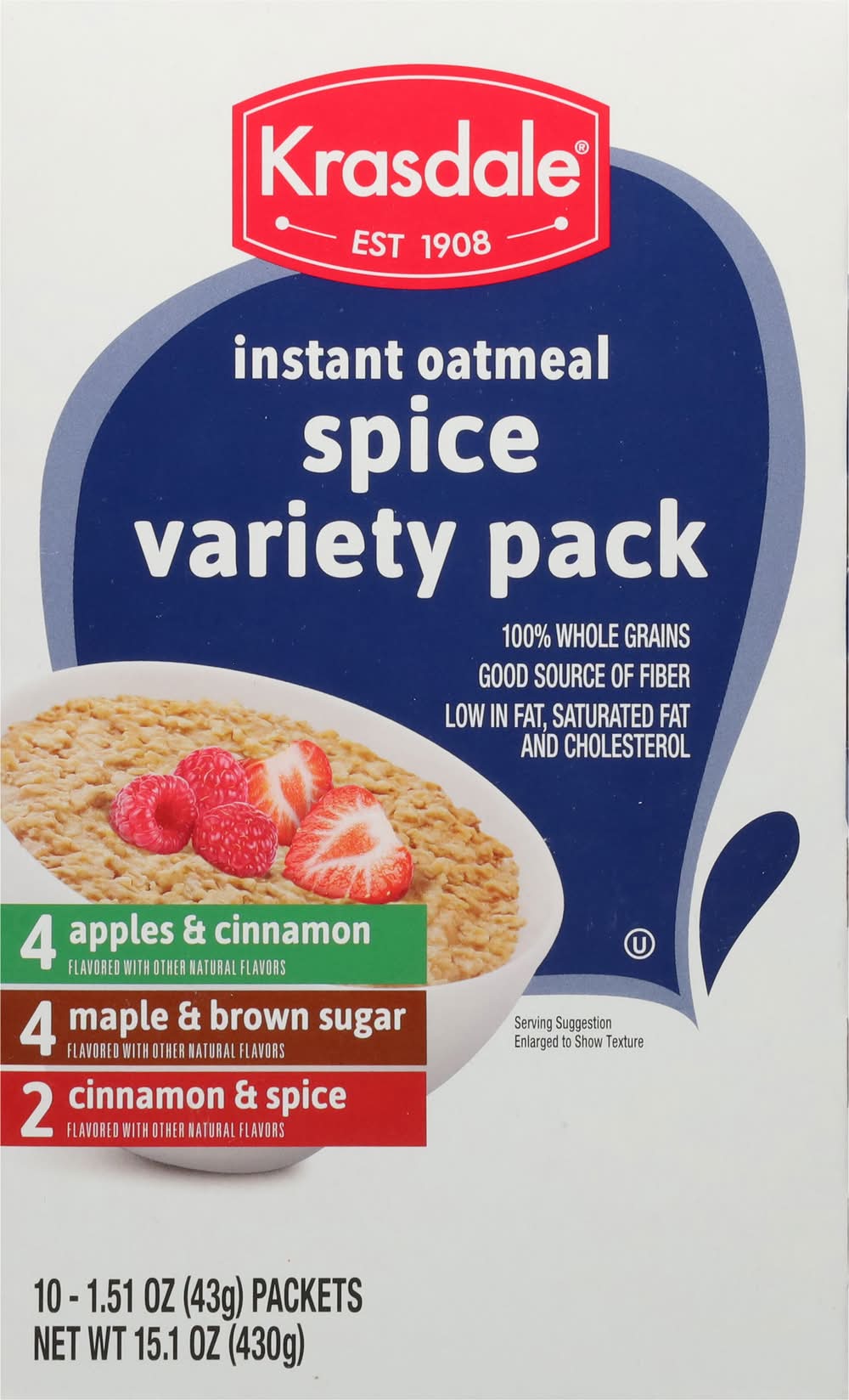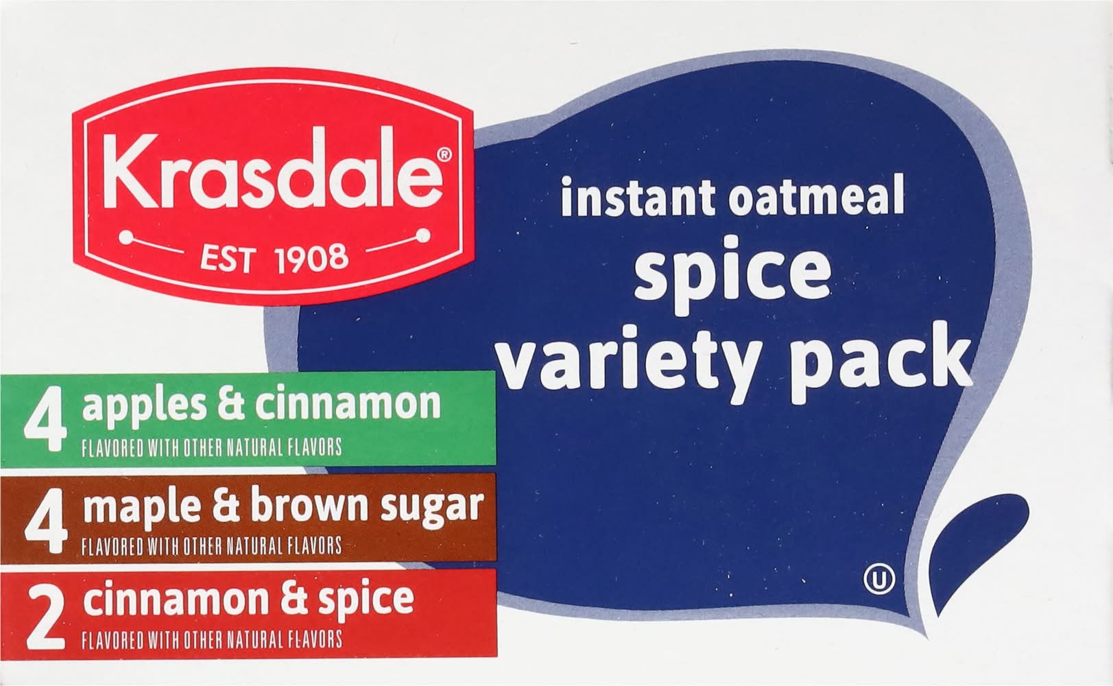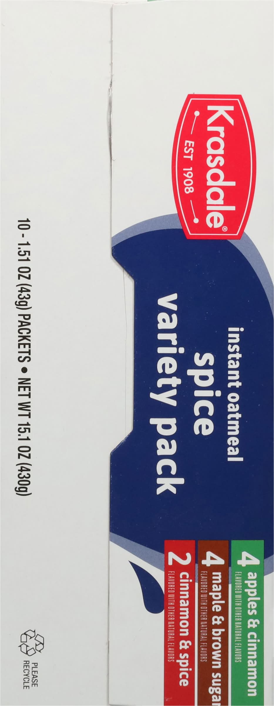 Instant Oatmeal, Spice, Variety Pack • Brand: Krasdale • Flavor: Apple & cinnamon maple & brown sugar, cinnamon & spice • Size: 15.1 • kosher