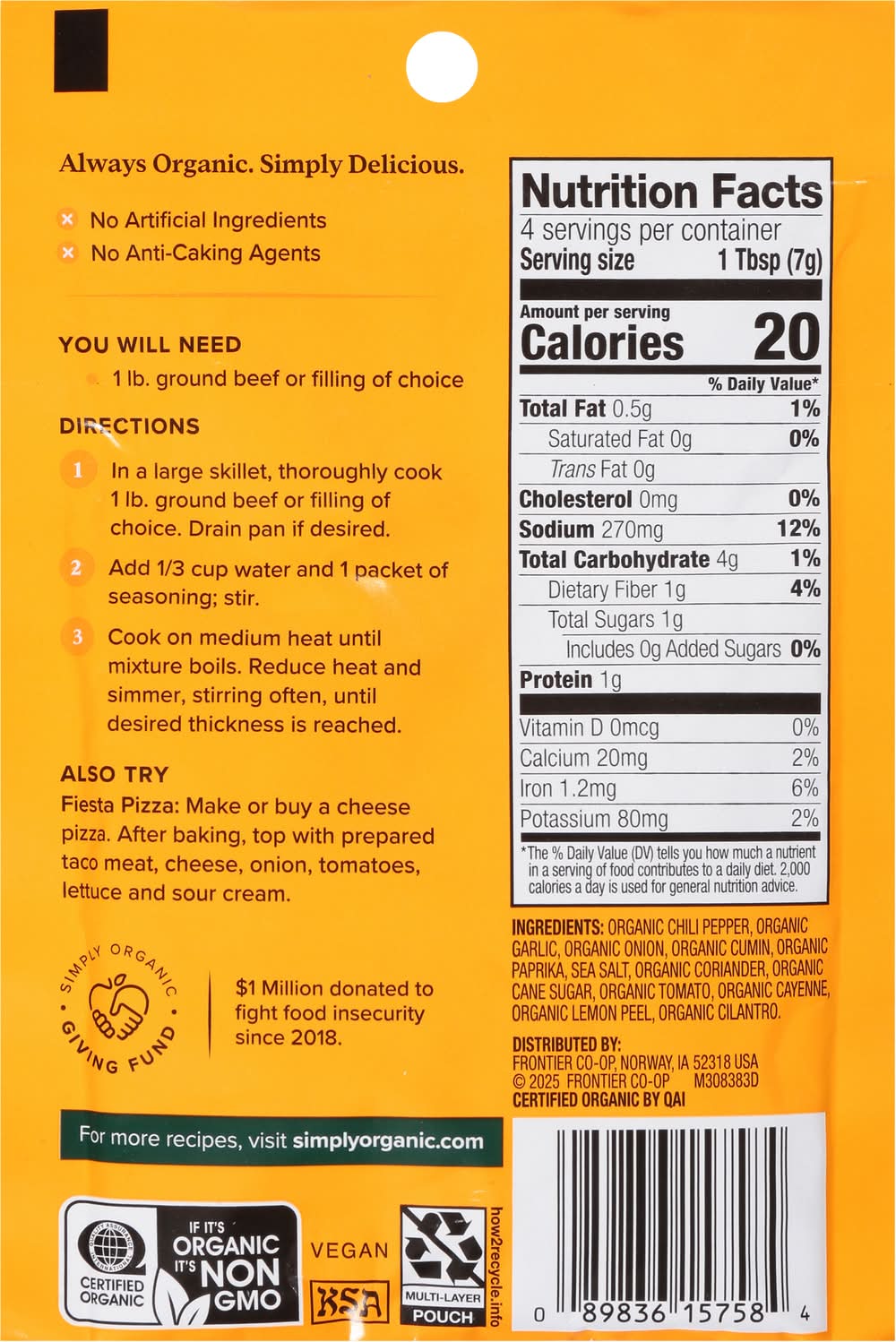 Simply Organic Mild Taco Seasoning Mix (1 oz)