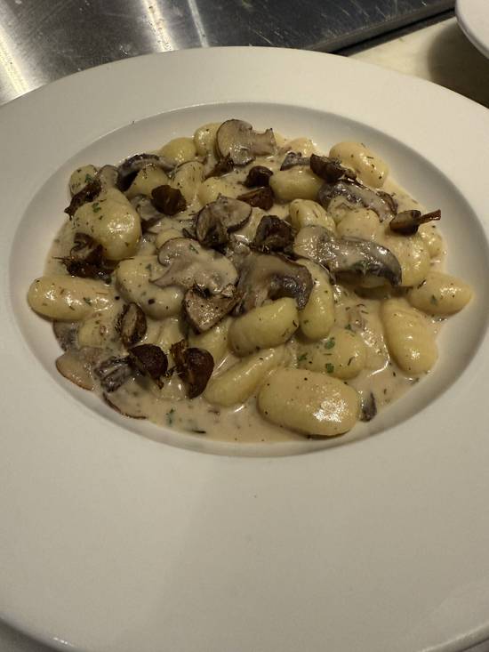 Gnocchi sautéed in creamy Parmesan anda Mushrooms sauce, Fresh parsley, boiled to perfection for a rich, indulgent taste.