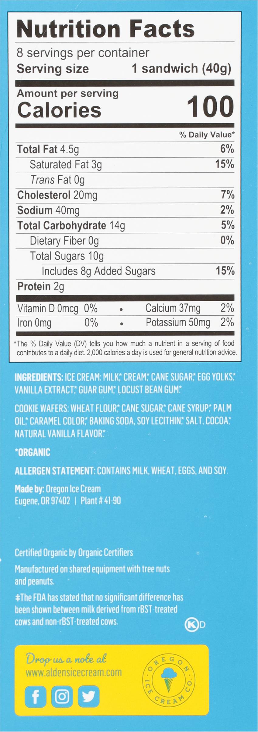 Alden's Organic Ice Cream Sandwich, Vanilla (2 fl oz, 8 ct)