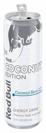 Single 12 fl oz can of Red Bull Energy Drink Coconut Edition.