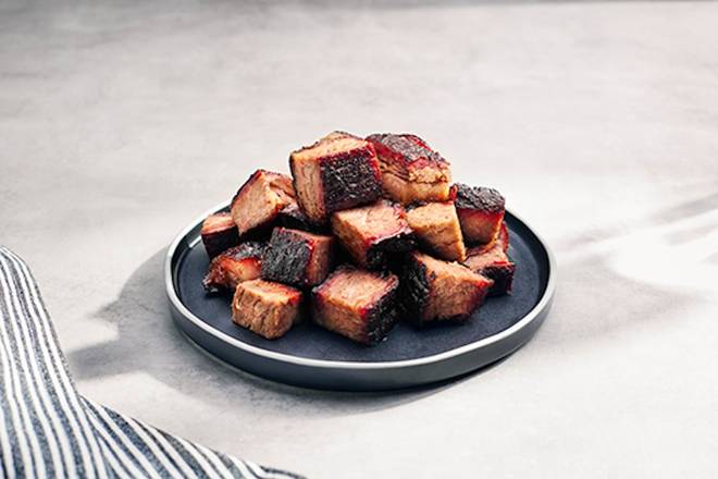 Tender and juicy beef brisket ends encased in a hickory-smoked bark.