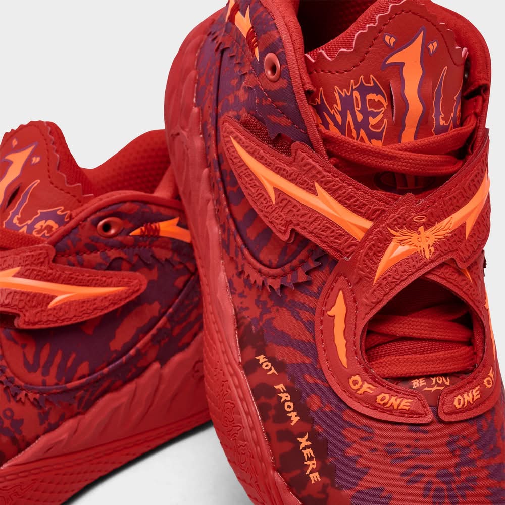 Mesh upper with overlays Dual cross-lace fastening straps Foam midsole Durable rubber outsole The Puma LaMelo Ball MB.05 Basketball Shoes are imported. Your little one will bring some head-turning style to the court when they wear the Little Kids' Puma LaMelo Ball MB.05 Basketball Shoes. They feature a mesh upper with eye-catching overlays, a dual cross-lace fastening strap system, and a durable rubber outsole. | PUMA Little Kids LaMelo Ball MB.05 Basketball Shoes in Red/Magenta Gleam/Fluro Orange | Size: 3.0 • Color: Red/magenta gleam/fluro orange • Size: 3.0