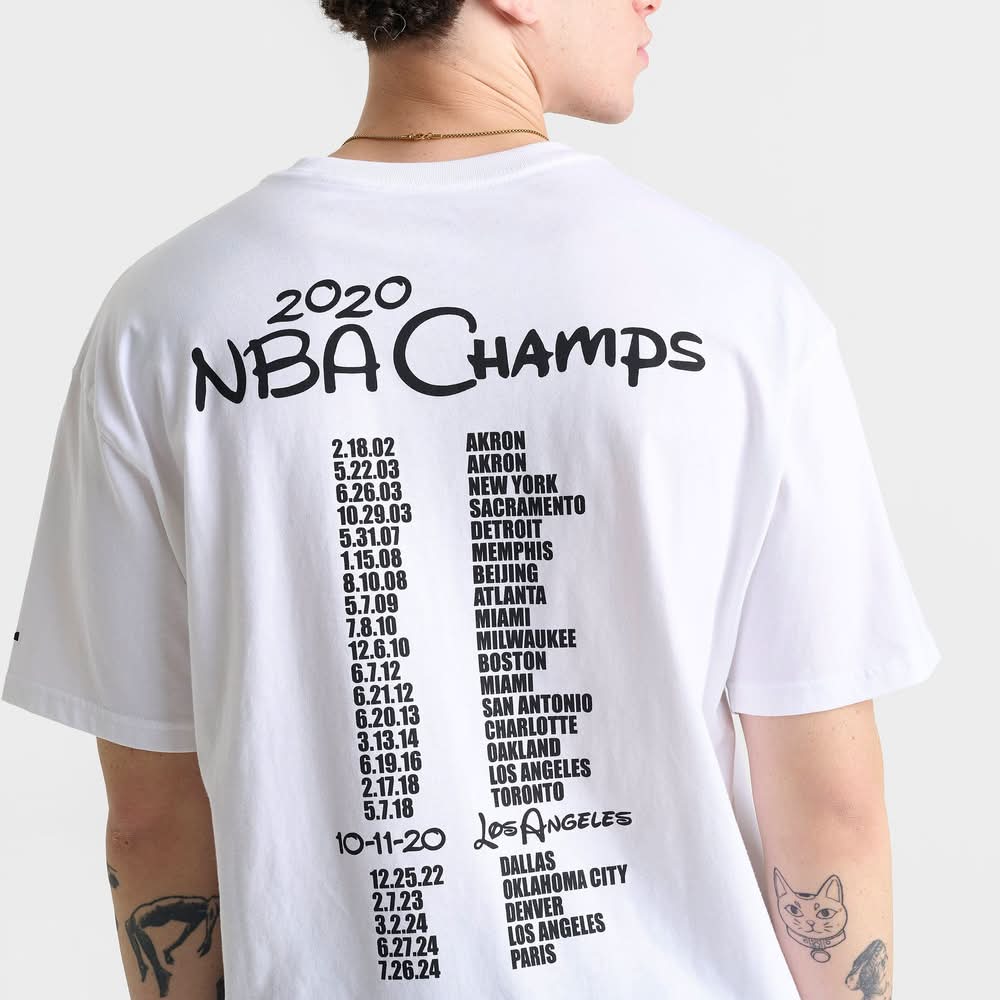Size & Fit Max90 fit designed to give you extra room through the shoulder, chest and body for a laid-back look Product Features Midweight cotton fabric feels soft and has a slight drape Animated LeBron MVP graphic celebrates the 2020 championship Tour date-style graphics on the back celebrate dates and locations of signature moments Ribbed crew collar for a classic, stay-put fit 100% cotton Machine wash The Nike LeBron Bubble Boy T-Shirt is imported. Celebrate a career-defining moment with the Men's Nike LeBron Bubble Boy T-Shirt. Inspired by the legendary run that proved LeBron James's greatness under pressure, this tee is a true collector's piece. Cartoon-style graphics capture LeBron and his championship trophies in bold detail, while a tour date-inspired back graphic marks this achievement as one of many highlights in King James' storied career. | Nike Men's LeBron Bubble Boy T-Shirt in White | Size: XL • Color: White • Size: X-Large