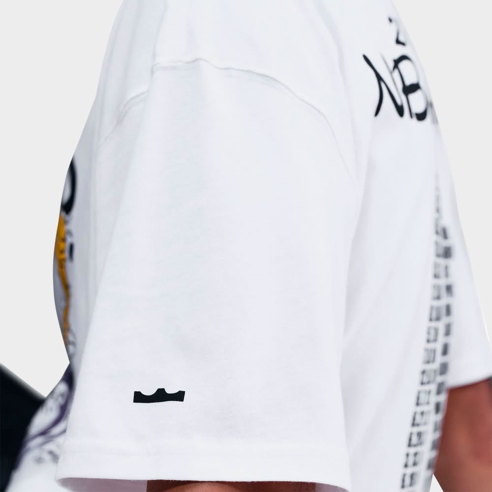 Size & Fit Max90 fit designed to give you extra room through the shoulder, chest and body for a laid-back look Product Features Midweight cotton fabric feels soft and has a slight drape Animated LeBron MVP graphic celebrates the 2020 championship Tour date-style graphics on the back celebrate dates and locations of signature moments Ribbed crew collar for a classic, stay-put fit 100% cotton Machine wash The Nike LeBron Bubble Boy T-Shirt is imported. Celebrate a career-defining moment with the Men's Nike LeBron Bubble Boy T-Shirt. Inspired by the legendary run that proved LeBron James's greatness under pressure, this tee is a true collector's piece. Cartoon-style graphics capture LeBron and his championship trophies in bold detail, while a tour date-inspired back graphic marks this achievement as one of many highlights in King James' storied career. | Nike Men's LeBron Bubble Boy T-Shirt in White | Size: Medium • Color: White • Size: Medium
