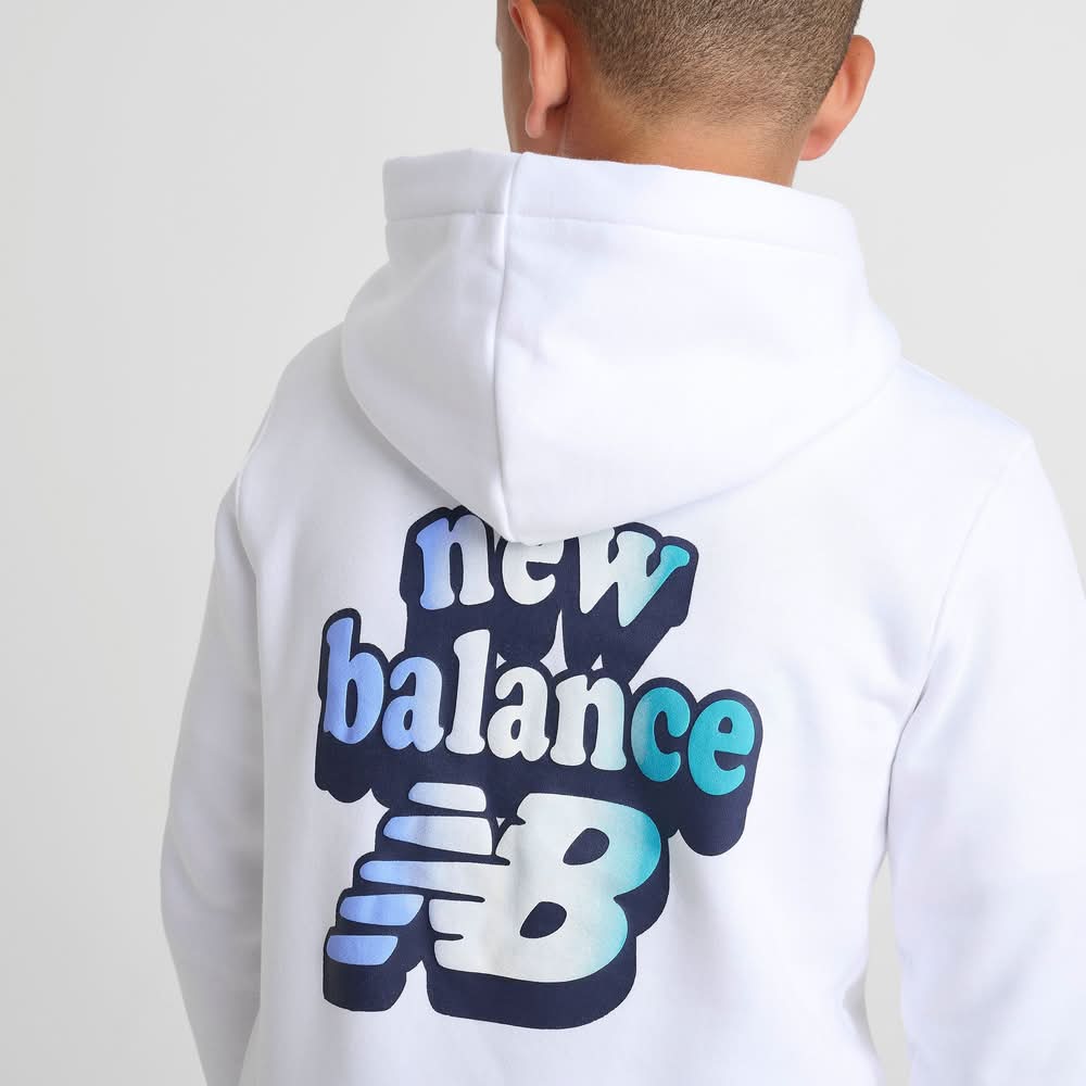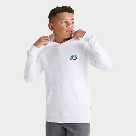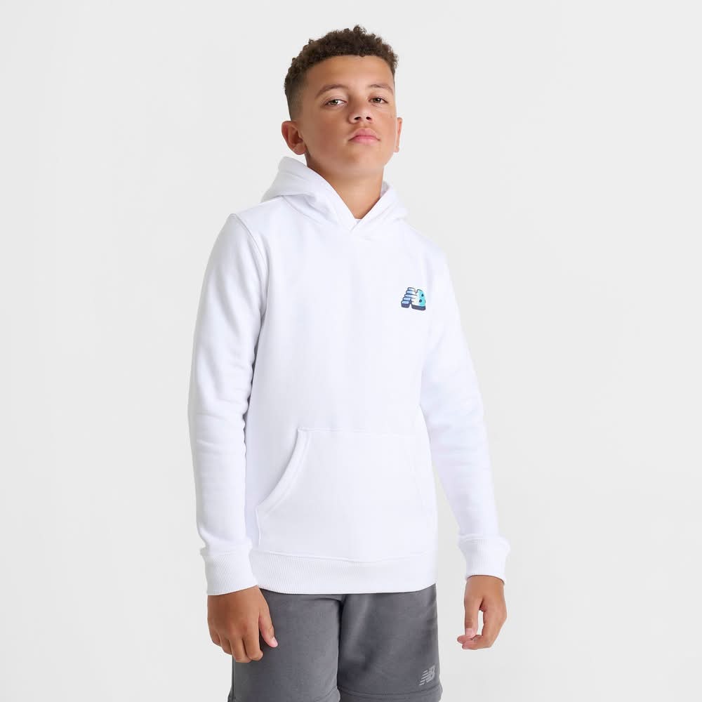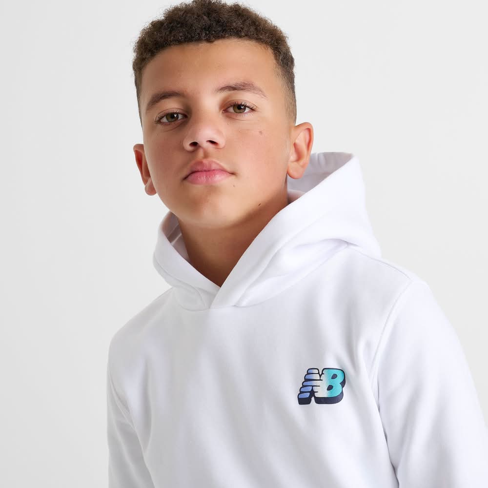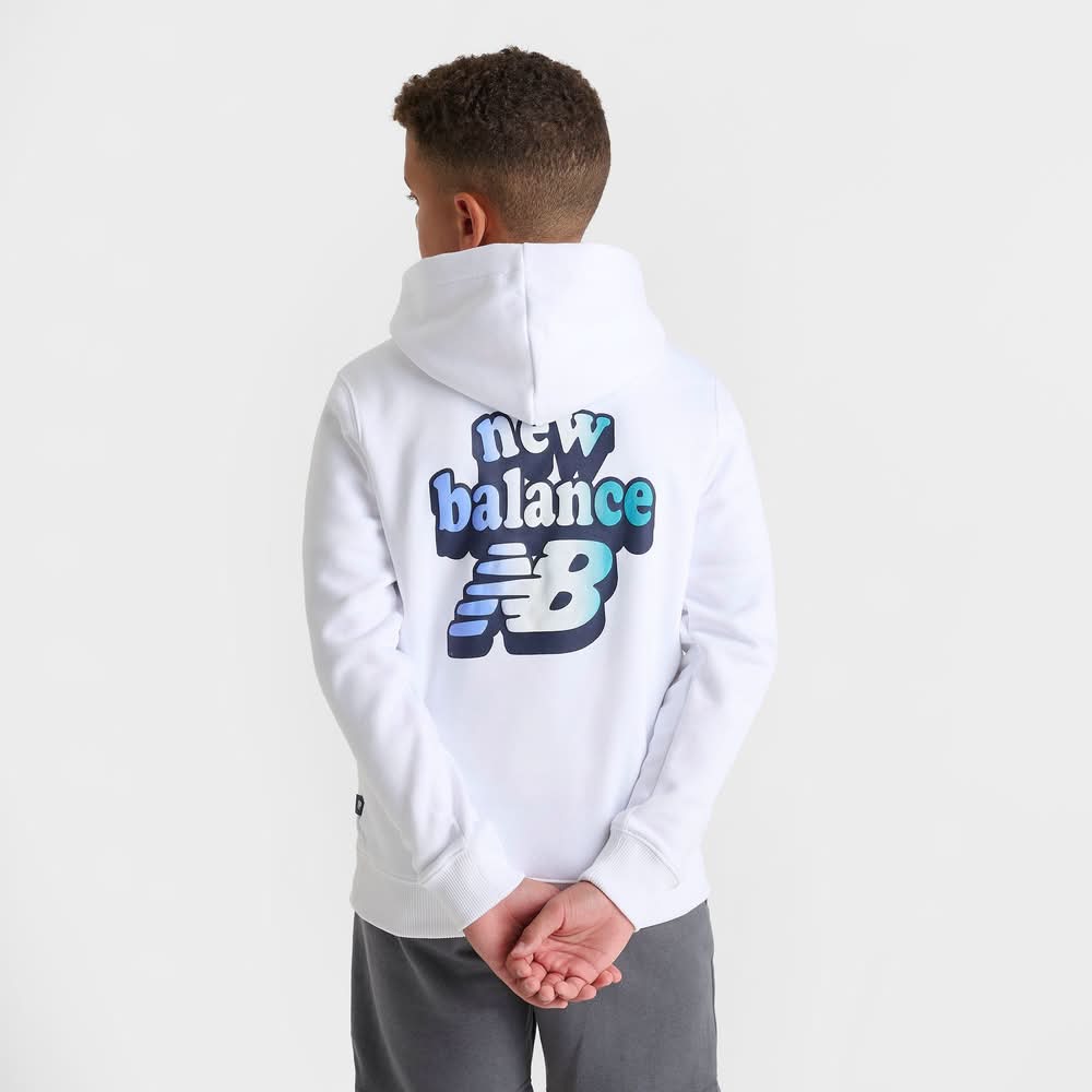 Size & Fit Standard fit is athletic and relaxed for easy layering Product Features Pullover design with a spacious hood Soft fleece fabric for warmth and comfort Playful New Balance Flying NB graphics on the front and back Front kangaroo pocket Ribbed hem and cuffs Machine wash The New Balance Flying NB Bubble Fleece Pullover Hoodie is imported. Cozy up with style that pops in the Kids' New Balance Flying NB Bubble Fleece Pullover Hoodie. Fresh, bubble-inspired New Balance graphics make a splash on the front and back of this pullover hoodie, lending heritage style and cloud-like comfort to your cold-weather rotation to pair with your New Balance sneakers. | New Balance Big Kids Flying NB Bubble Fleece Pullover Hoodie in White | Size: Large • Color: White • Size: Large