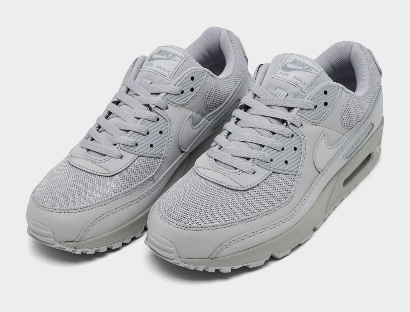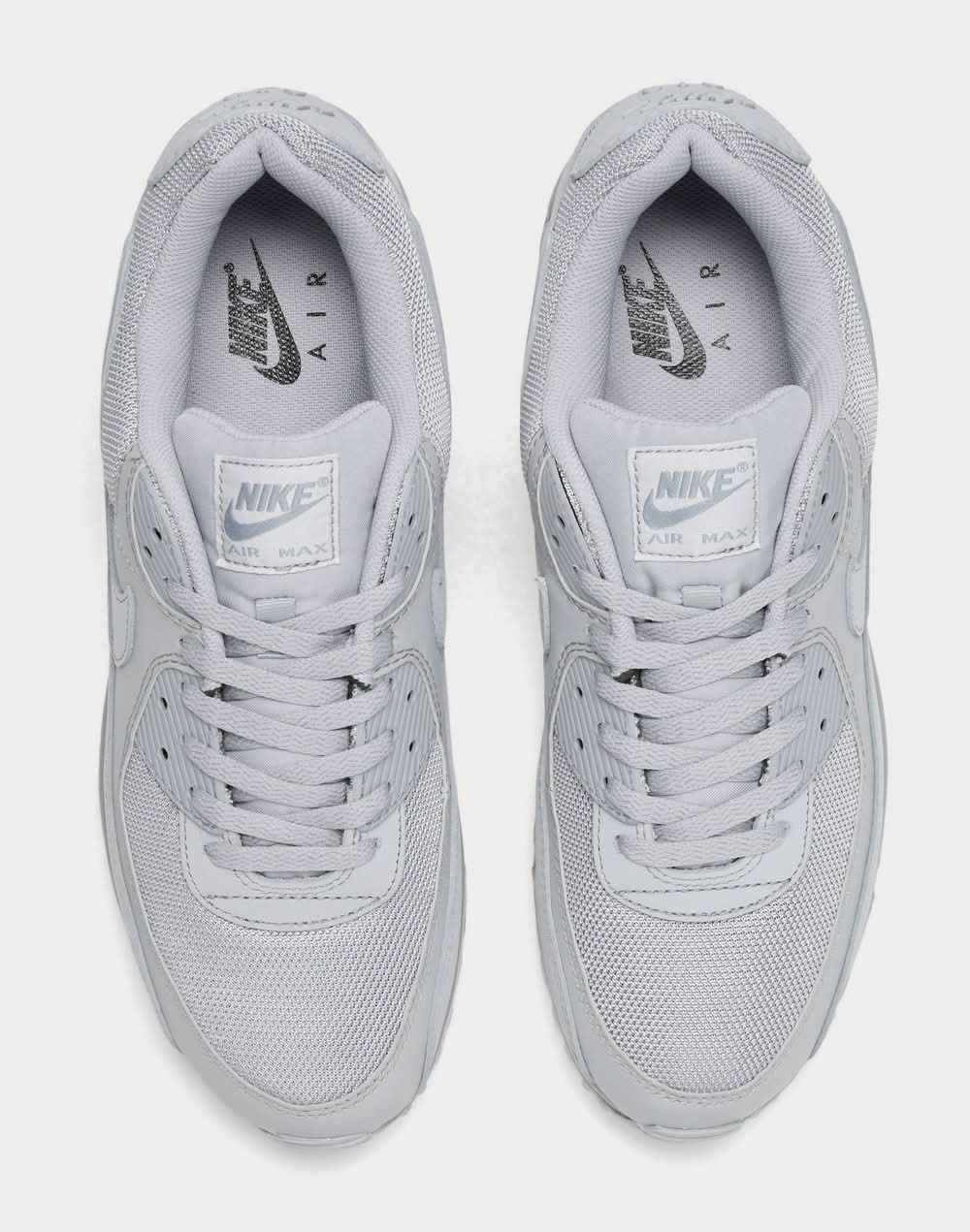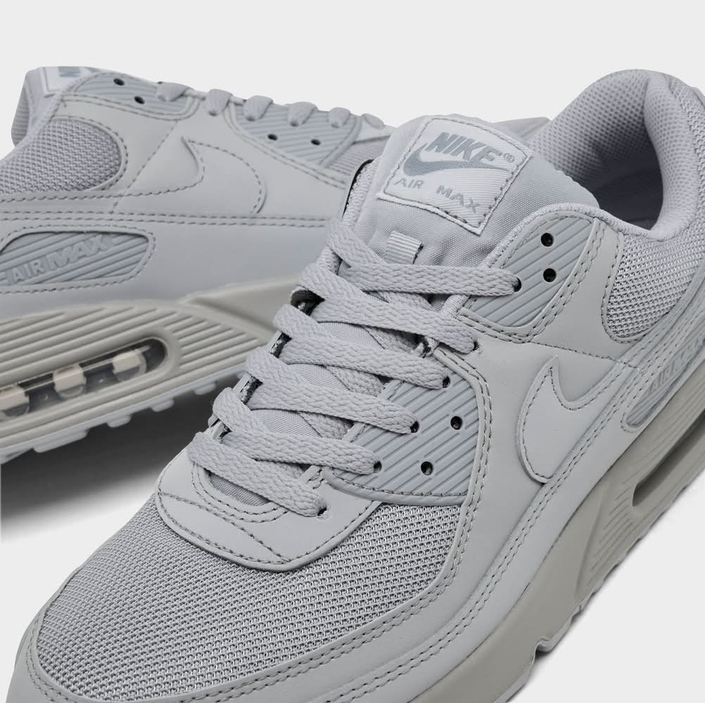 Low top silhouette with padded collar and tongue for comfort Retro runner turned lifestyle sneaker design Textile upper with synthetic and leather overlays Nike Max Air unit in the heel for support and cushioning Flexible sole design encourages a more natural stride Rubber outsole with waffle traction pattern The Nike Air Max 90 is imported. Step up your sneaker game when you step out in the classic Men's Nike Air Max 90 Casual Shoes. Originally designed as a running sneaker and known as the Air Max III, the Tinker Hatfield-designed Air Max 90 boasts universal appeal and remains a sneaker icon to this day, with classic colorways providing timeless style and new colors and textures breathing new life into a legend. | Nike Men's Air Max 90 Casual Shoes in Wolf Grey/Wolf Grey | Size: 9.0 • Color: Wolf grey/wolf grey/wolf grey • Size: 9.0