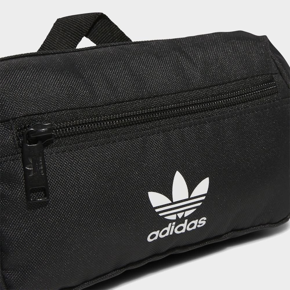 Zippered main compartment. Zippered front compartment. Top carrying handle. Adjustable strap with buckle. Spot clean. The adidas Originals For All Waist Pack is imported. Travel light and keep your small items organized when you use the adidas Originals For All Waist Pack. It has multiple zippered pockets to keep all of your stuff secure and an adjustable strap so you can get the perfect fit. | adidas Originals For All Waist Pack in Black/White | Size: NOSIZE • Color: Black/white • Size: No Size • unisex