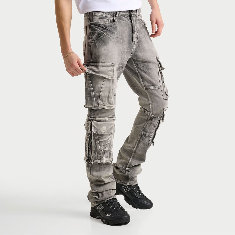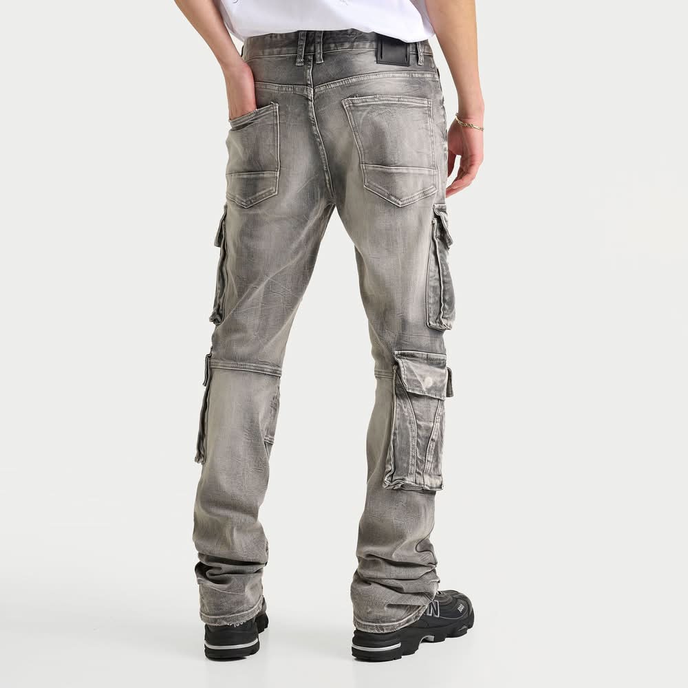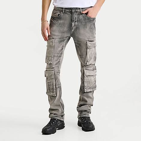 Many in stockSize & FitStraight Fit: Knee and leg opening is roughly the same widthProduct FeaturesSoft yet sturdy denim with a bit of stretch for easy comfort and long-lasting durability. Adjustable zipper fly fastening with belt loops around the waist for a classic fit. Side hand pockets and dual rear pockets offer a classic look and space for necessities. Stacked fold-down cargo pockets on the upper, lower, and rear supply next-level space for your essentials and more. 98% cotton, 2% spandex. Machine wash. The Smoke Rise Cargo Stacked Flare Denim Jeans are imported. Upgrade your denim drawer from mundane to a modern masterclass with the Men's Smoke Rise Stacked Utility Cargo Denim Jeans. The premium denim construction delivers that perfect balance of structure and comfort, feeling worn in from your first wear with a wash that develops character over time. Offering both the durability of workwear and the refinement of contemporary streetwear with plenty of cargo pockets to keep you on trend and carry all your must-haves while making your moves. | Smoke Rise Men's Stacked Utility Cargo Denim Jeans in Union Grey | Size: 32 • Color: Union grey • Size: 32 • male