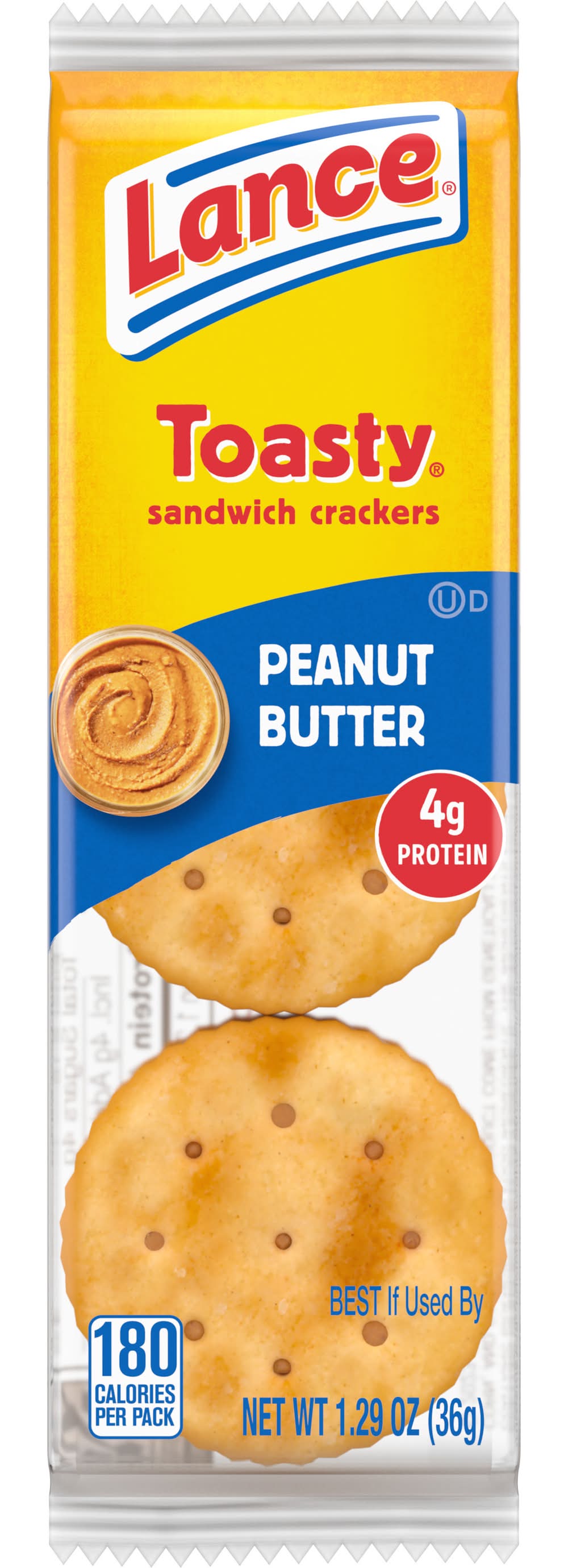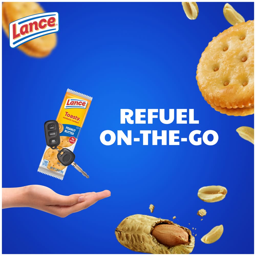 Nothing satisfies a snacking urge like Lance Toasty Peanut Butter sandwich crackers. We combined your favorite toasty round crackers with real peanut butter filling smack-dab in the middle. Talk about snacking excellence! At Lance, sandwiches mean more: they aren’t just two somethings with whatever in the middle. Or, as we say, a Lance Sandwich cracker is two awesomes on the outside with totally incredible in the middle. Toasty Peanut Butter sandwich crackers pair two of our fresh-baked crackers with real peanut butter filling we make ourselves in between. This individual cracker snack pack has 6 sandwich crackers. That means you can enjoy a perfect snack for breaks, afternoon snacks, or whenever you’re hungry between meals. It’s also ideal for packing when you’re on-the-go snacking. You can grab all that delicious, peanut-y goodness, any time. Lance has been fueling families for more than 100 years. Toasty Peanut Butter sandwich crackers are no exception. Lance Sandwich crackers, the king of all sandwich crackers. Bring it! Snyder's-Lance, Inc., Charlotte,NC,28277