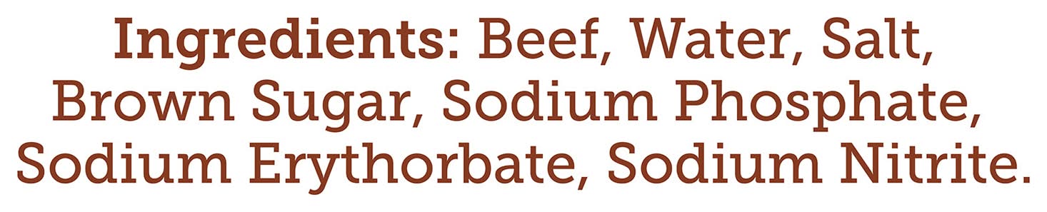 Ingredients: Beef, Water, Salt, Brow Sugar, Sodium Phosphate, Sodium Erythorbate, Sodium Nitrite