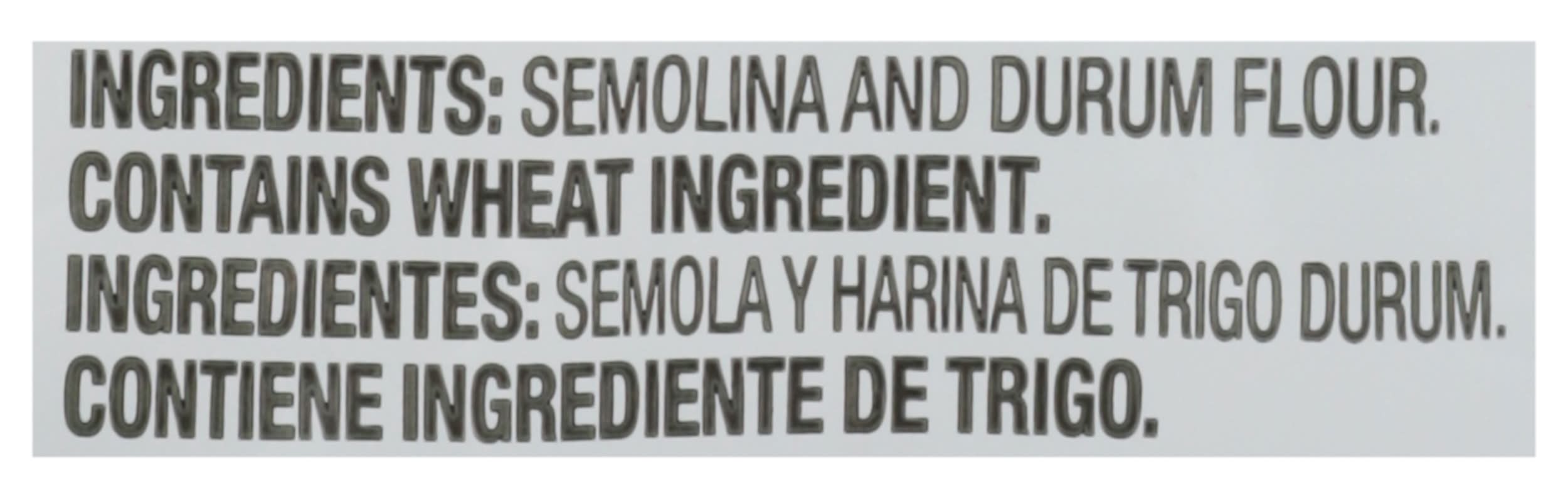 Ingredients: Semolina and Durum Flour. Contains: Wheat
