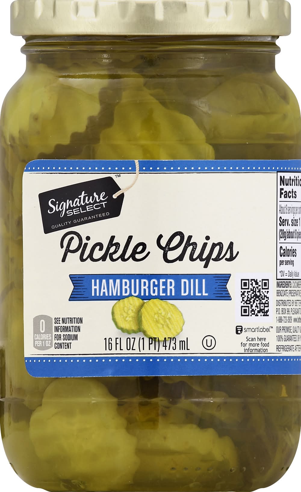 Ingredients: Cucumbers, Water, Vinegar, Salt, Contains Less than 2% of Alum, Calcium Chloride, Sodium Benzoate (Preservative), Potassium Sorbate (Preservative), Natural Flavor, Polysorbate 80, Yellow 5, Blue 1.
